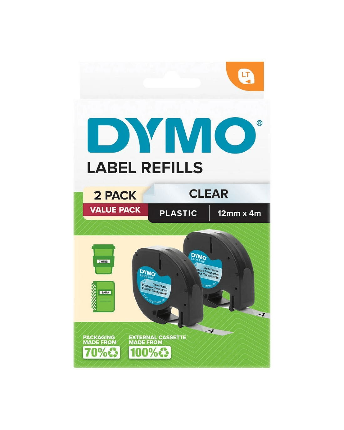 Sold by OfficeworksDYMO LetraTag Plastic Label Tape 12mm Black on Clear 2 Pack