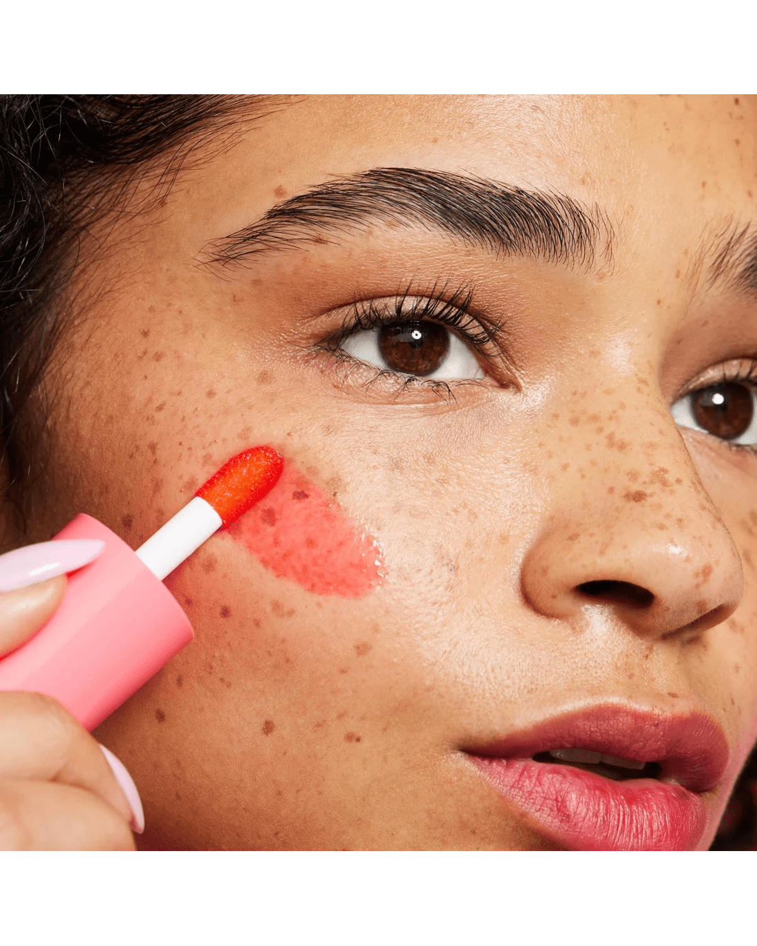• Swipe blush tint on cheeks with the applicator