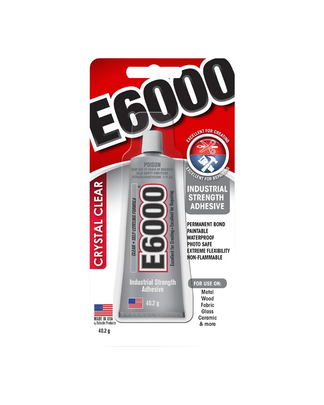 This E6000 Industrial Strength Adhesive is formulated to meet high performance industrial requirements. It has a self-leveling formula for compatibility with almost any material, remaining flexible once set. Whether you’re a DIYer or a pro, it can handle any project you throw at it.