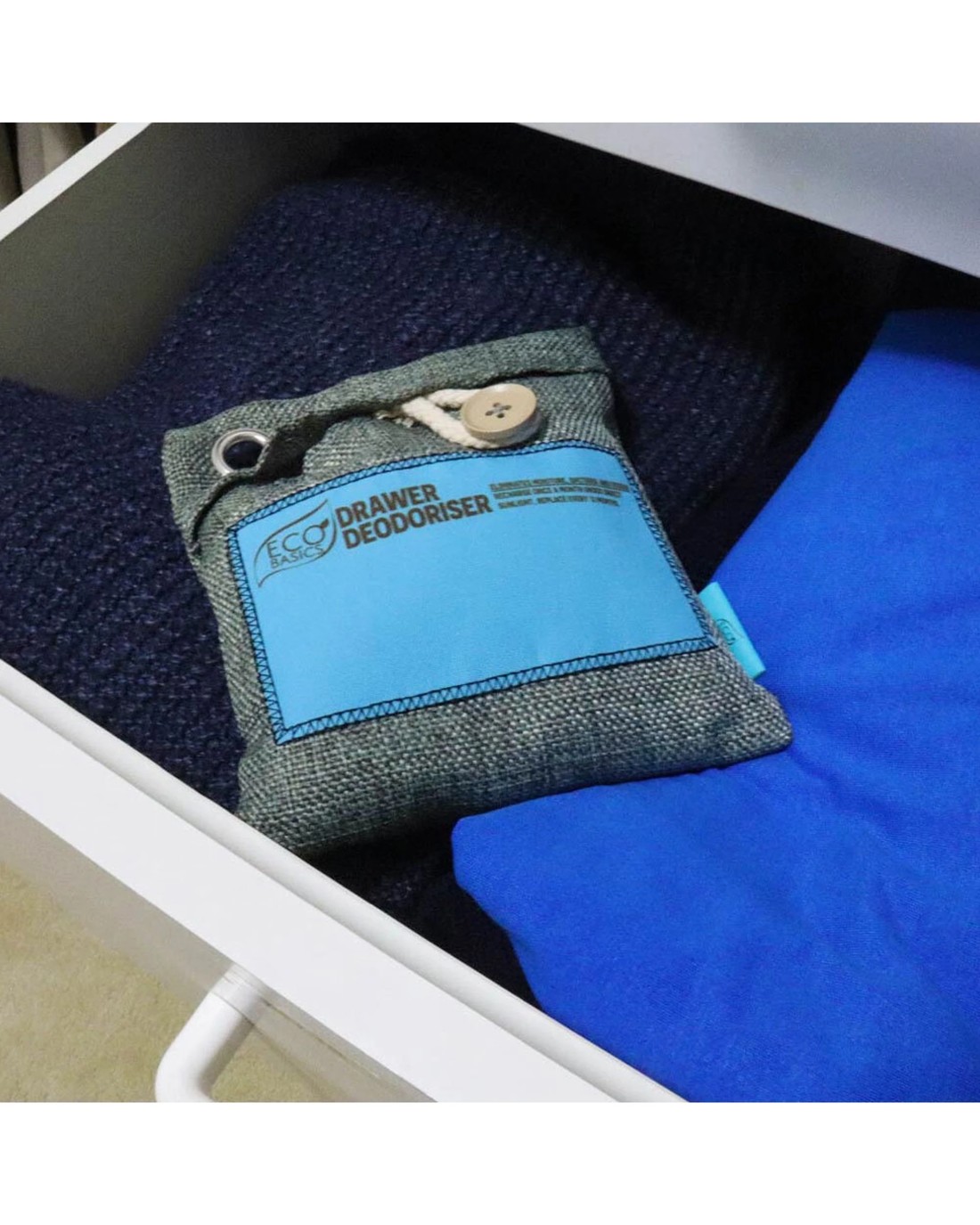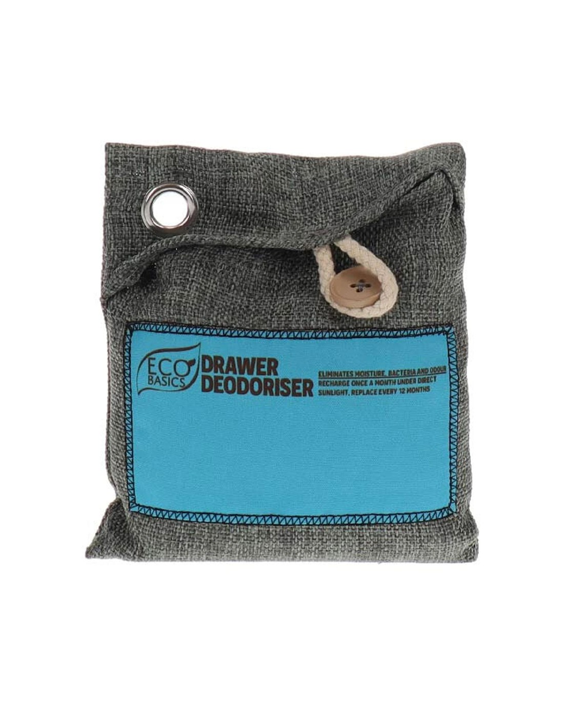 The ECO BASICS 2PK Natural Reusable Moisture Absorber Drawer Deodoriser is designed for keeping your small spaces fresh and odour-free. Crafted from bamboo charcoal, it effectively absorbs moisture, odours, and bacteria, making it ideal for drawers, wardrobes, and cabinets.