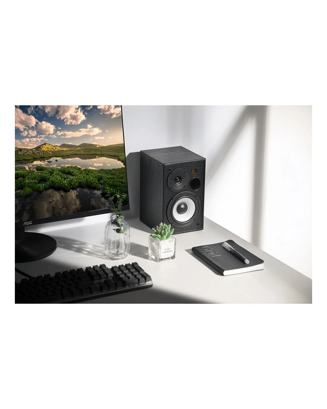 The Edifer R990BT Speakers are great for any indoor space. They have a digital amplifier, offering rich, dynamic sound with silk dome tweeters and 4" drivers. It provides versatile connectivity, with Bluetooth 5.4 for wireless use and dual RCA inputs.