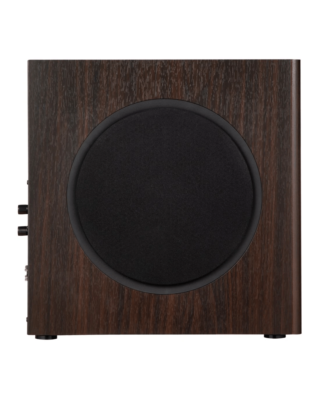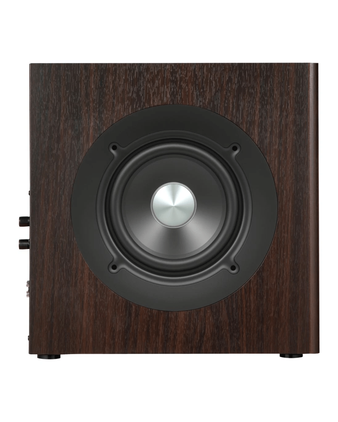 - The 8-inch long-throw woofer delivers deep bass with a frequency response extending down to 35Hz.
