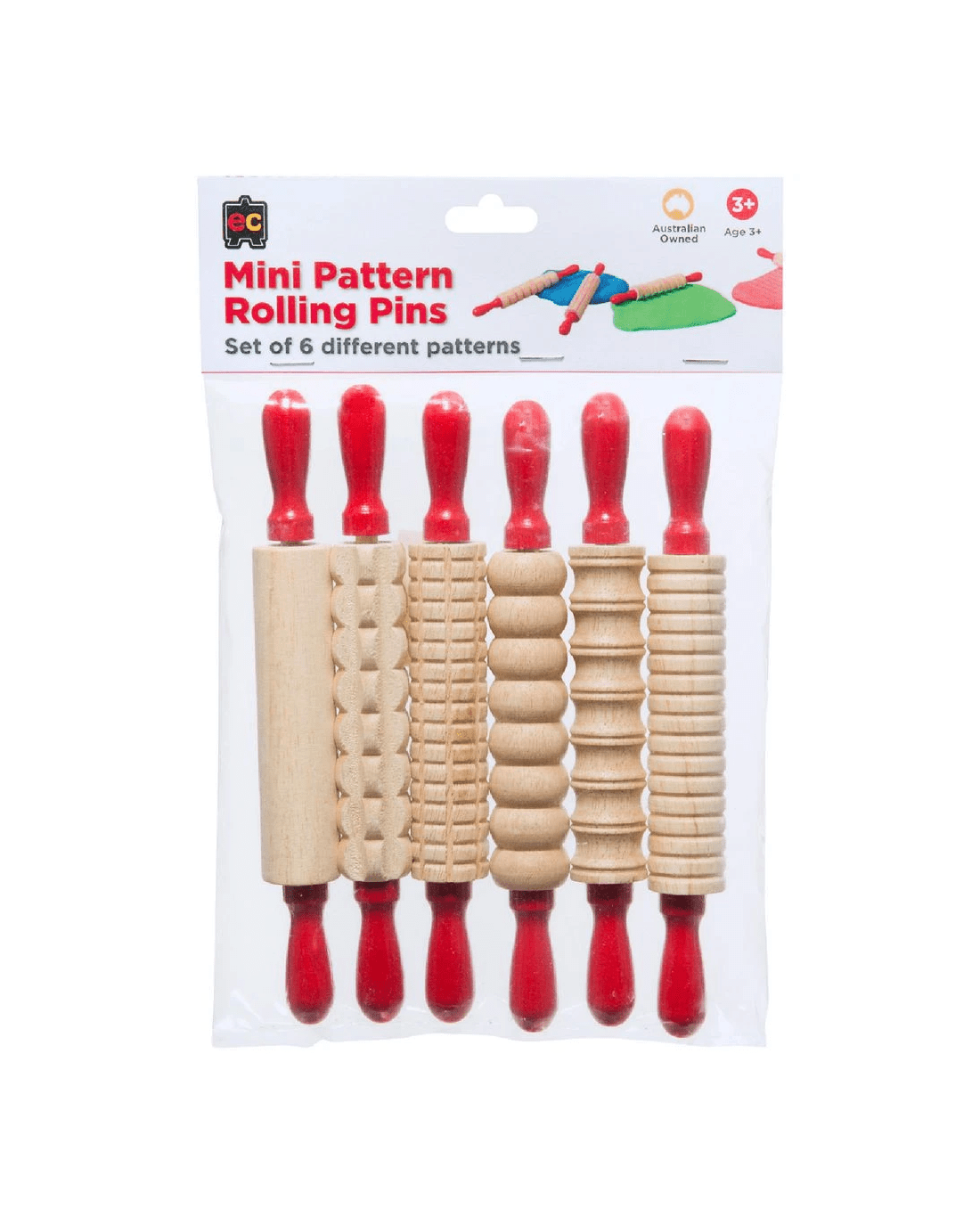 Sold by OfficeworksEducational Colours Mini Wooden Rolling Pin Patterned 6 Pack