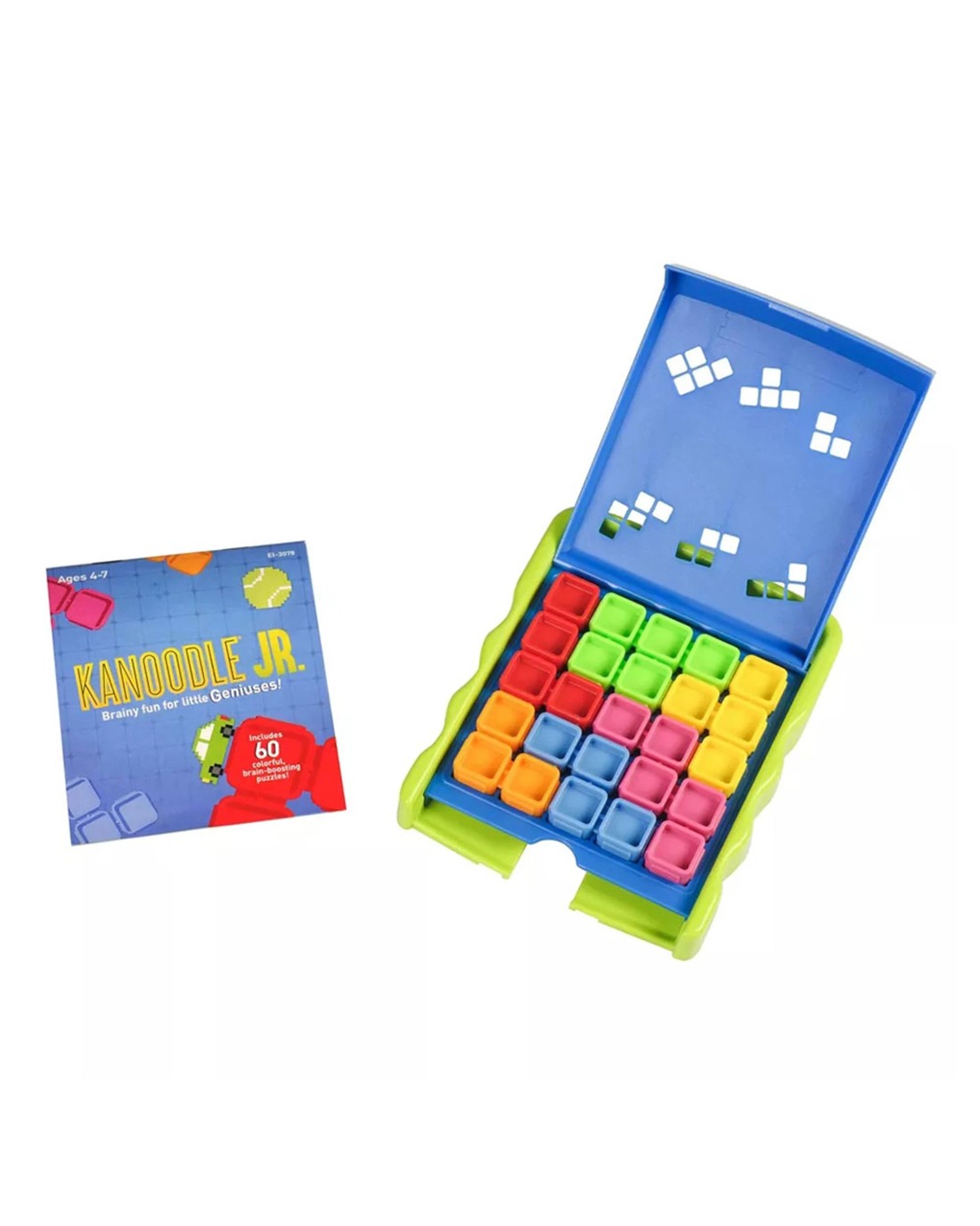 Finally! Pint-sized puzzlers can get in on the Kanoodle action with Kanoodle Jr.! Use 6 chunky puzzle pieces to complete 60 different puzzle challenges on the puzzle board.