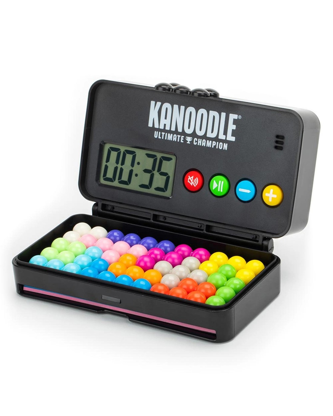 - INCLUDES: 12 Kanoodle pieces, battery-powered timer, and guide with 500 new 2D and 3D puzzles, plus the bonus KanoodleChallenge. Ages 7+, Requires 2 AAA batteries (not included)