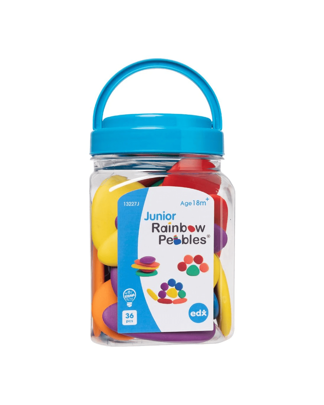 These EdX Education Junior Rainbow Pebbles are ideal for construction and manipulation activities at home or in the classroom. The pebbles come in 3 different sizes and in 6 bright colours, with a total of 36 pebbles in the jar.