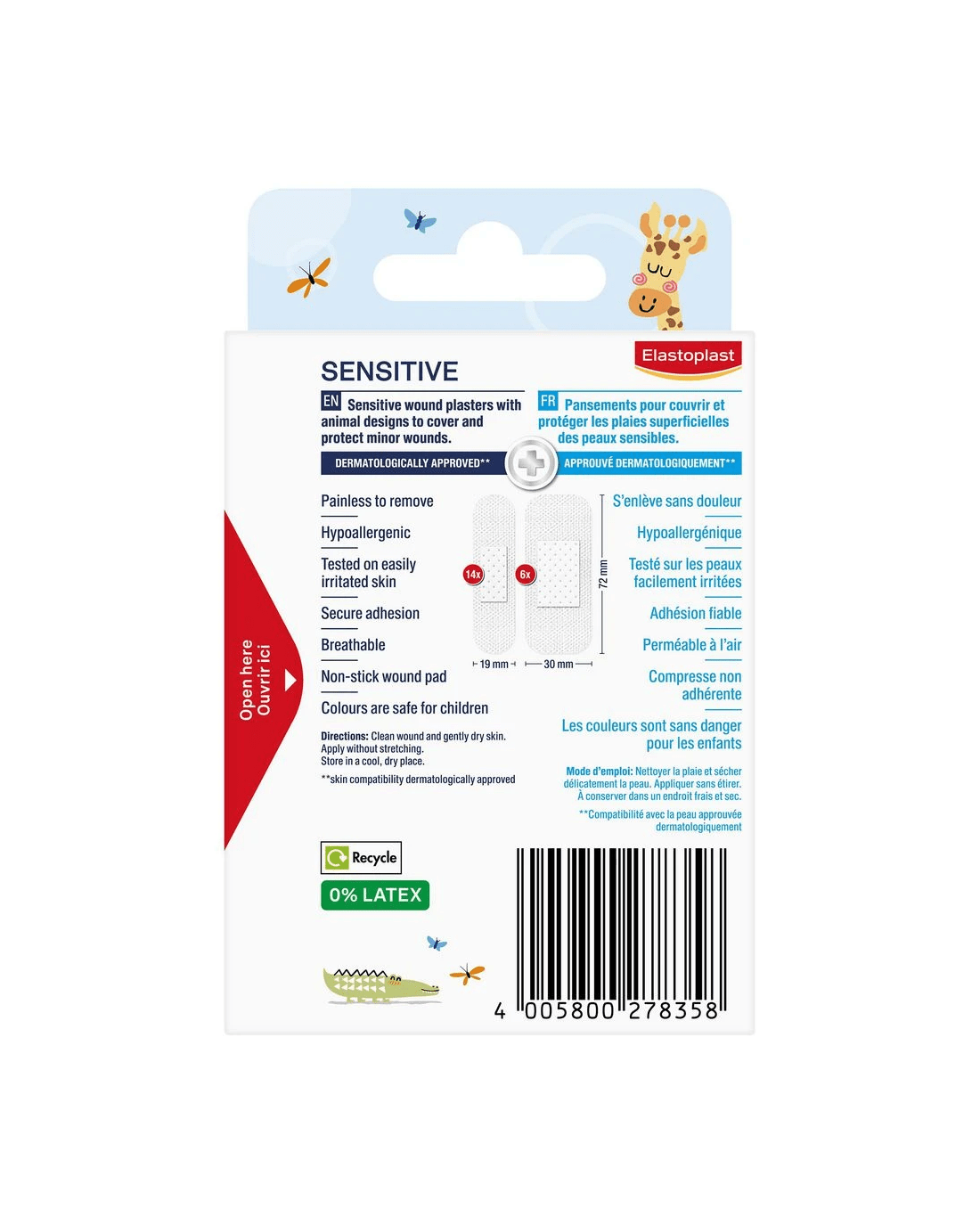 These Elastoplast Sensitive Kids Plasters are very skin friendly and are suitable for covering all types of smaller wounds. The comfortable material is hypoallergenic and flexible, while the non-stick wound pad protects and cushions the wound. The secure and skin friendly adhesion ensures that the plaster stays in place, but is still painless to remove.