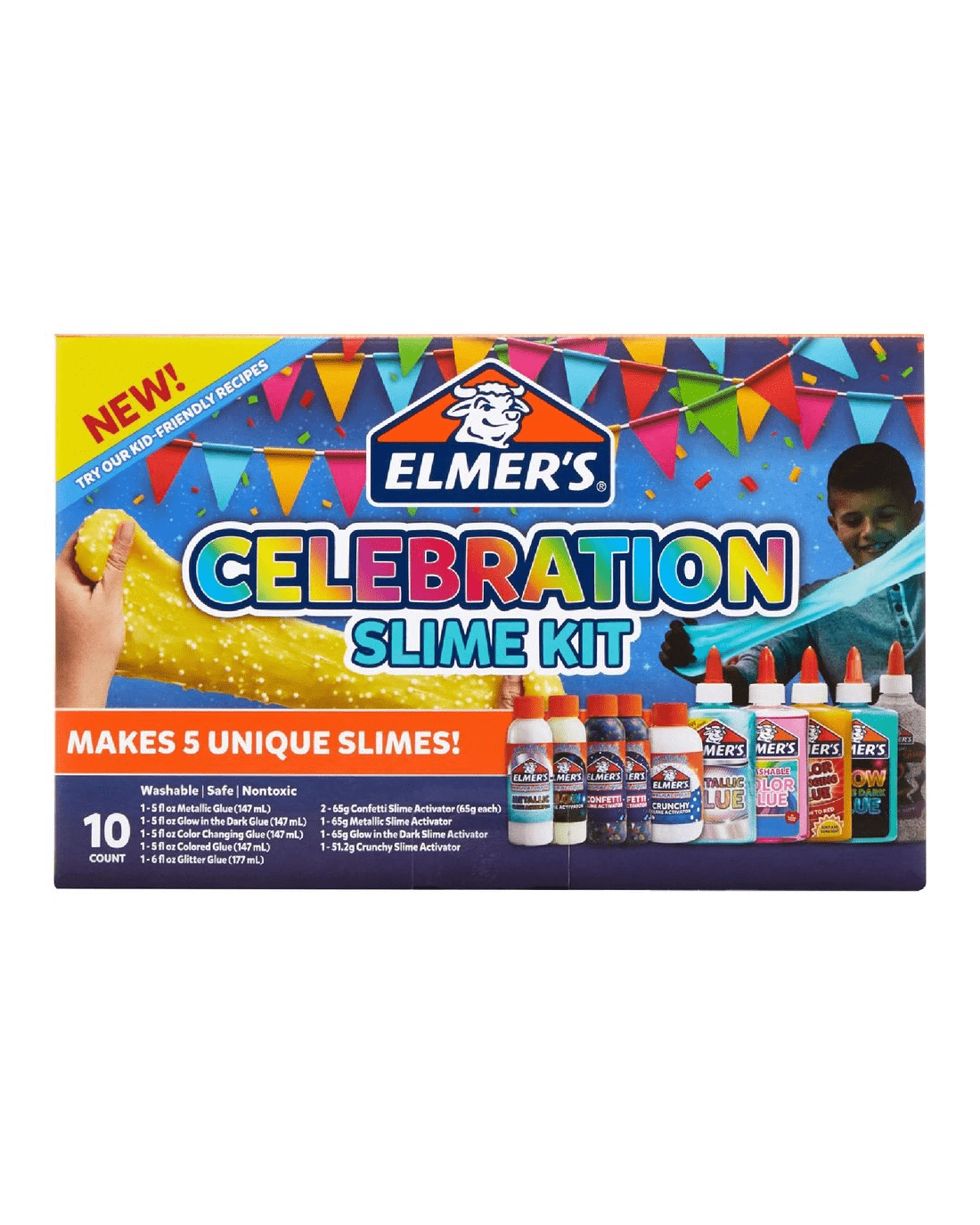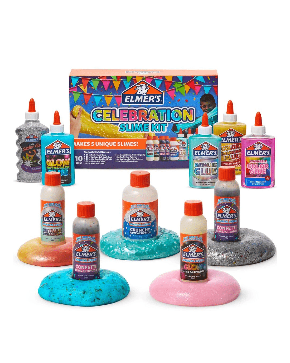 Making your own slimy creations is easy with this Elmer's Celebration Slime Kit. This kit contains five Elmer's Glue and five Magical Liquid Slime Activators so you can mix and match and discover new slime combinations. Elmer's have even come up with a non-runny formula for outstanding results each time.