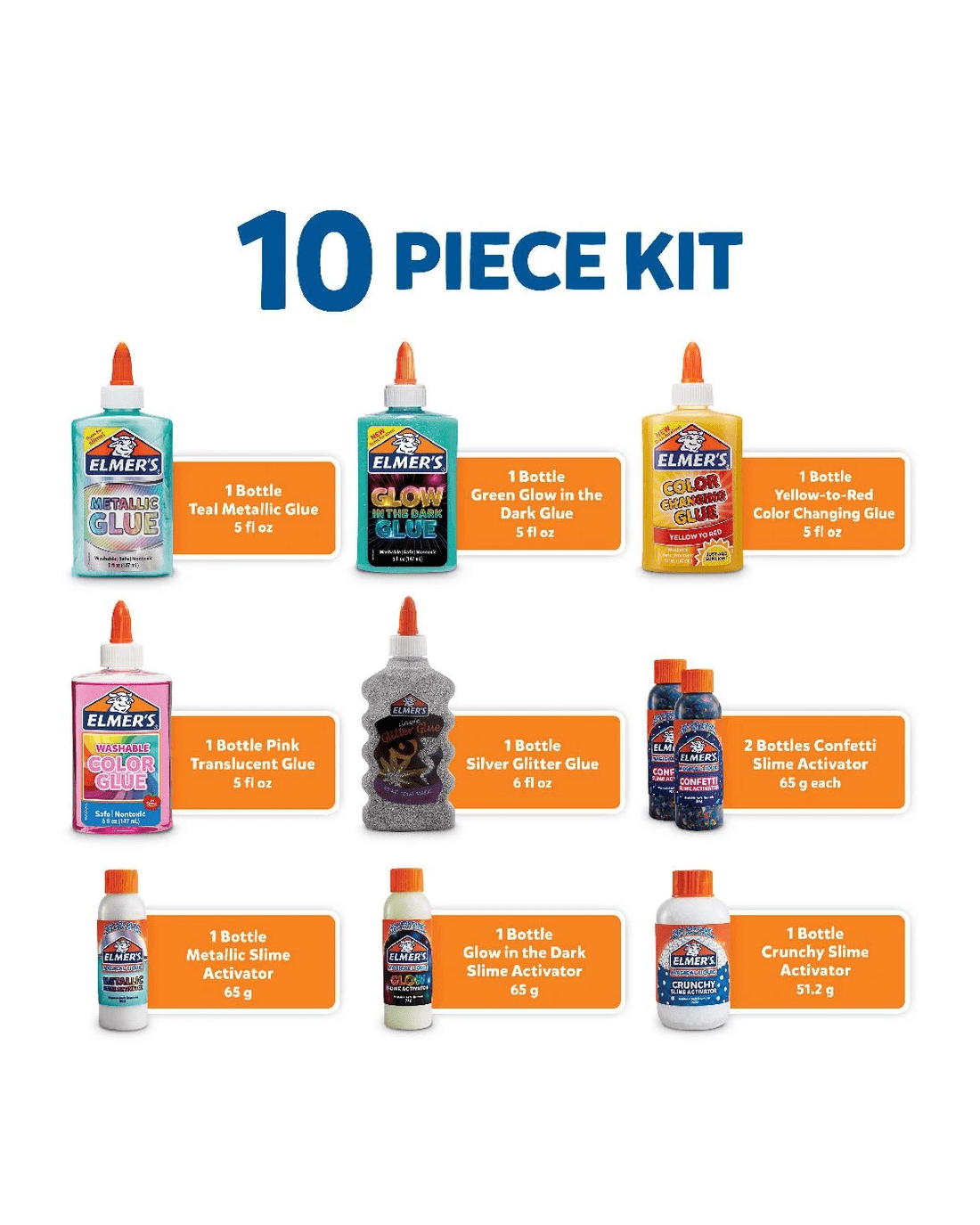 - This kit contains five of each Elmer's Glue and Magical Liquid Slime Activators so you can mix and match and discover new slime combinations.