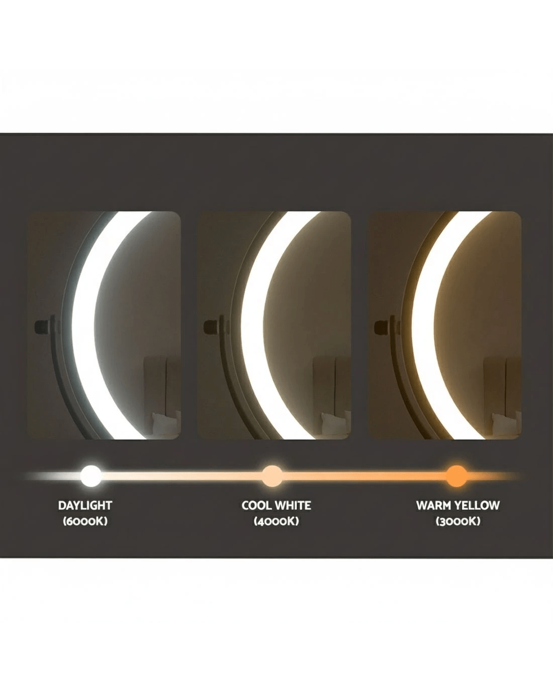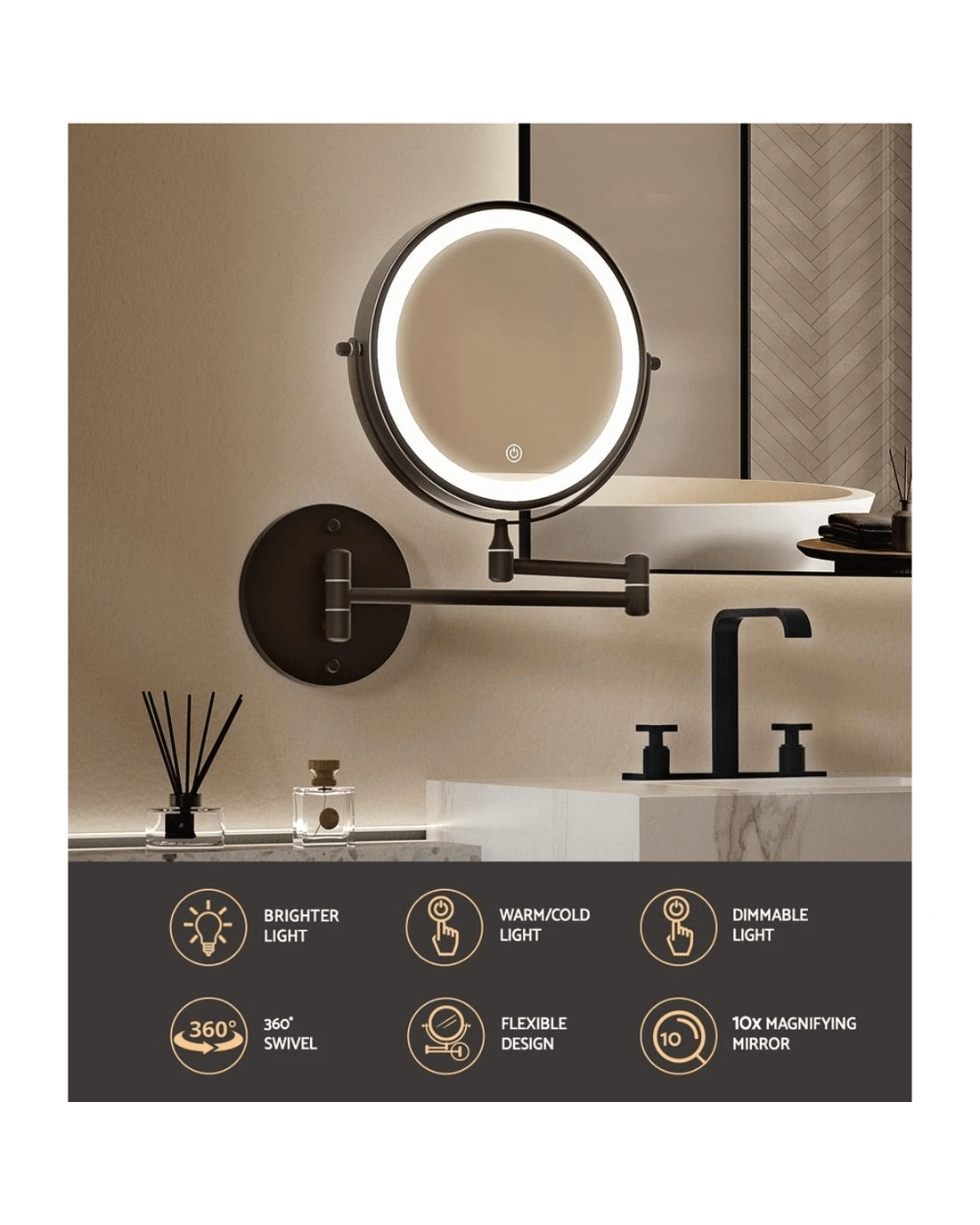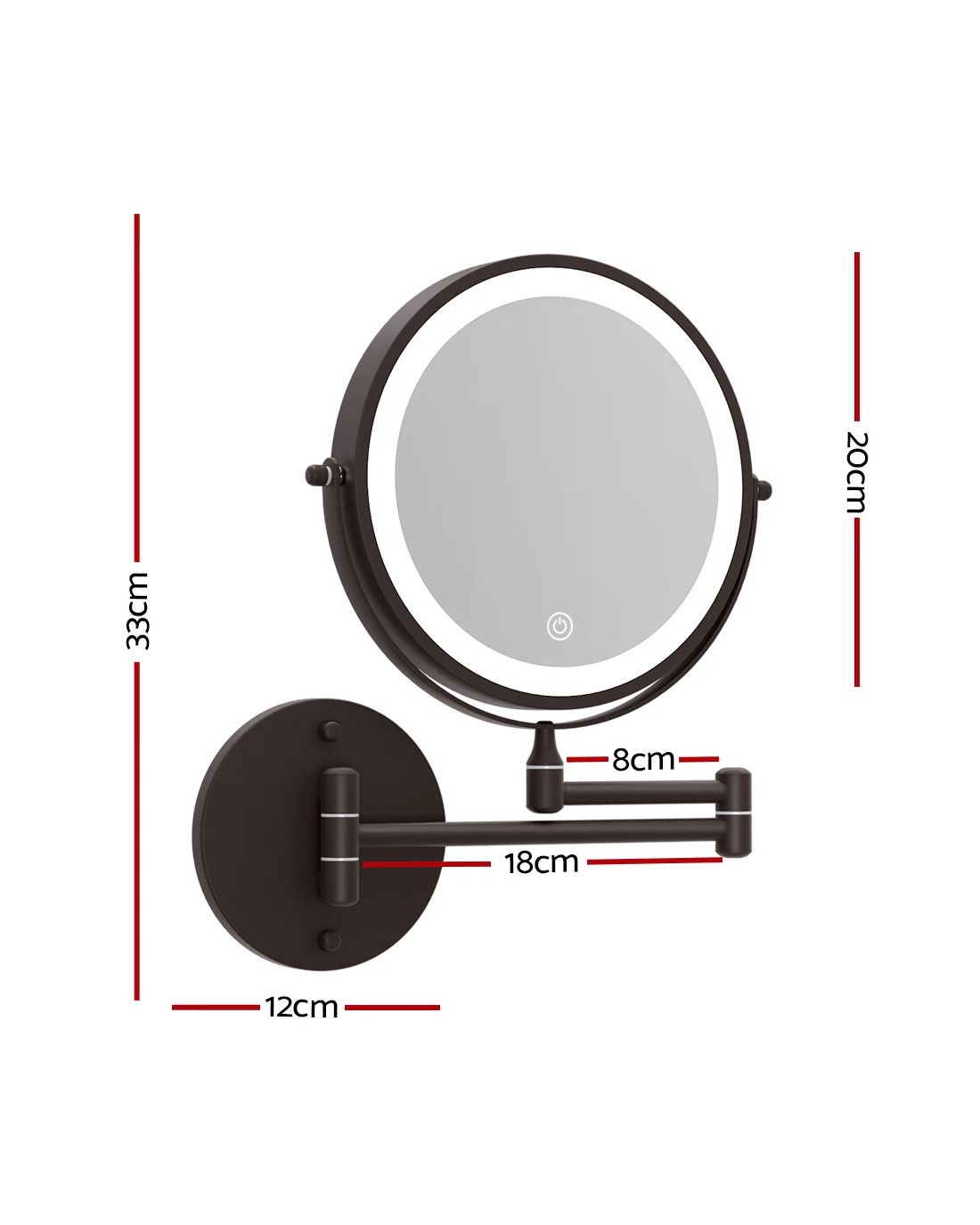 Get the star treatment with our gorgeous Embellir Make-up Mirror. Framed with 54 LED lamp beads, this mirror really lights up your visage for your daily makeup regimen. The aluminium frame is sturdy, lightweight, and adds a glistening touch of glamour to the entire mirror. The mirror sits on a smooth powder-coated metal base for stability and durability. Even more wonderful is that the LED light can be easily adjusted for brightness and colour temperature using the simple touch controls: choose from cool white, daylight or warm lighting. Choose from our wall-mounted, extendable frames or tabletop models. Turn your bedroom or bathroom into a celebrity VIP set overnight with our make-up mirror, and enjoy beauty in all its illuminated brilliance.