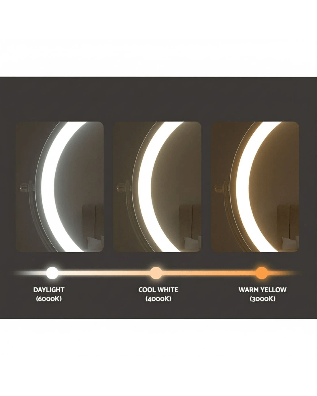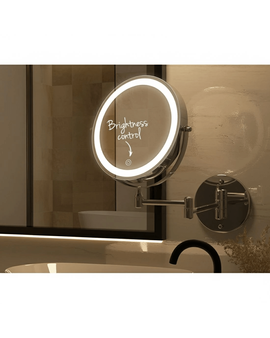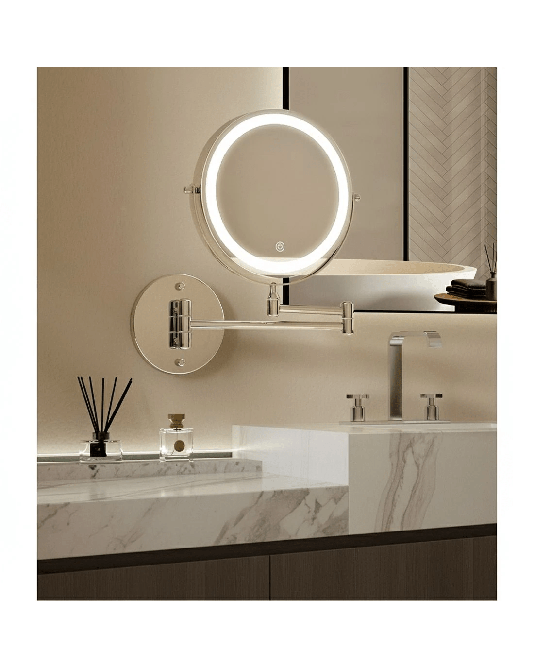 Get the star treatment with our gorgeous Embellir Make-up Mirror. Framed with 54 LED lamp beads, this mirror really lights up your visage for your daily makeup regimen. The aluminium frame is sturdy, lightweight, and adds a glistening touch of glamour to the entire mirror. The mirror sits on a smooth powder-coated metal base for stability and durability. Even more wonderful is that the LED light can be easily adjusted for brightness and colour temperature using the simple touch controls: choose from cool white, daylight or warm lighting. Choose from our wall-mounted, extendable frames or tabletop models. Turn your bedroom or bathroom into a celebrity VIP set overnight with our make-up mirror, and enjoy beauty in all its illuminated brilliance.
