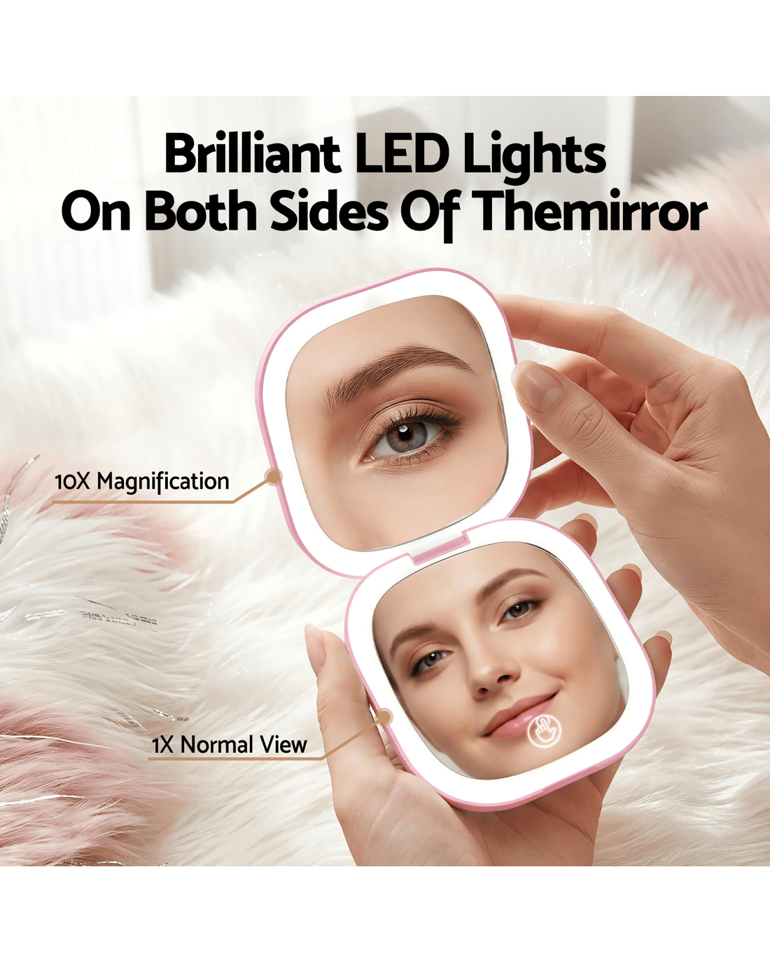 The Embellir LED Compact Mirror is your portable, professional makeup studio. Folding to just 9x9x2cm—smaller than a phone—it fits in any bag or pocket. It features dual-sided 1x and powerful 10x magnification for full-face and detailed work. With 3 colour temperatures and adjustable brightness, it simulates any lighting for perfect colour accuracy. The rechargeable battery and included USB cable offer cordless freedom. Presented in a gift box with pouch, it's the perfect practical and stylish present.