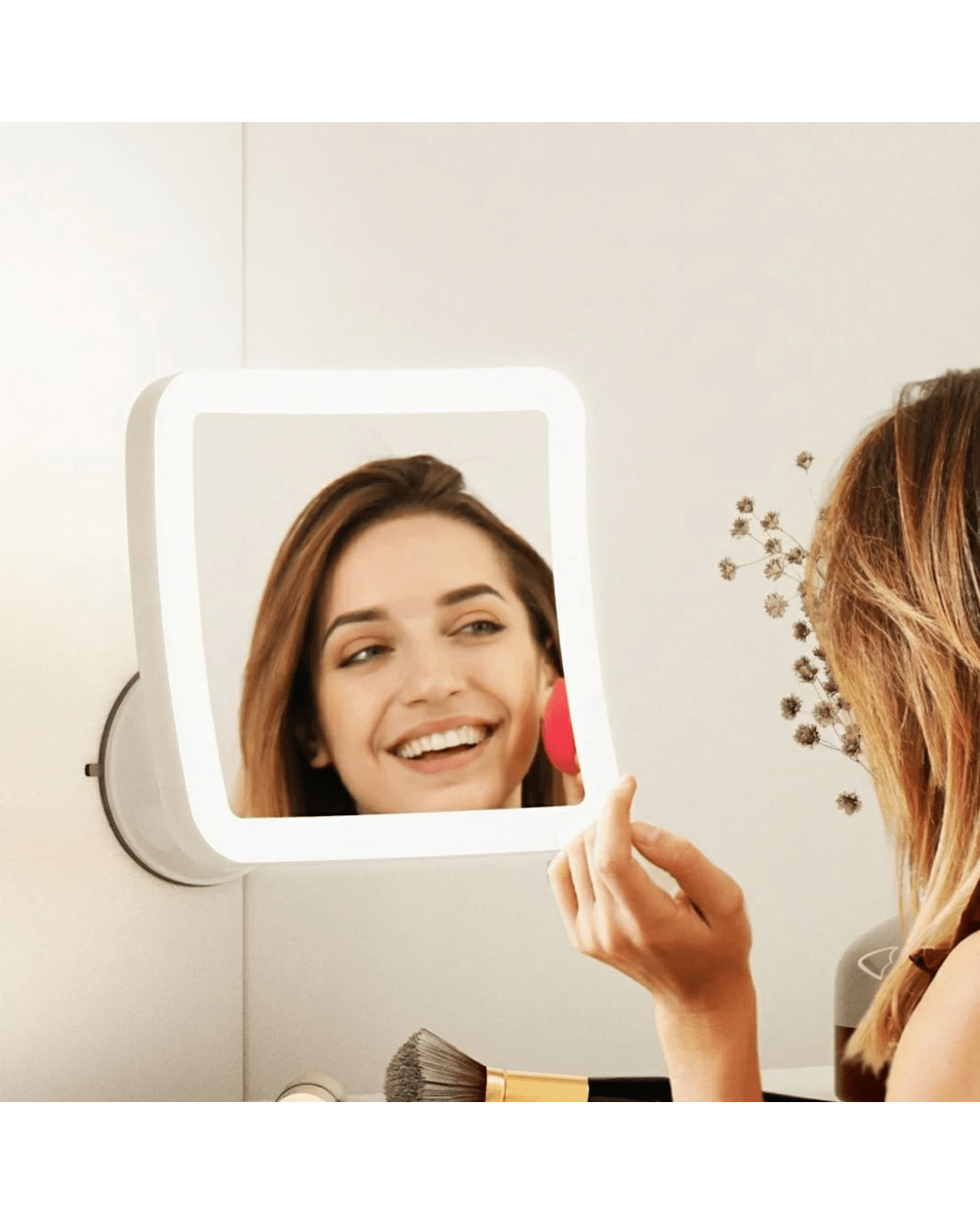 Embellir Makeup Mirror delivers salon-level precision with its 10x magnifying glass, featuring a locking suction cup that securely attaches to any flat surface. The touch-controlled LED strip offers two brightness settings for accurate makeup application in low-light environments.