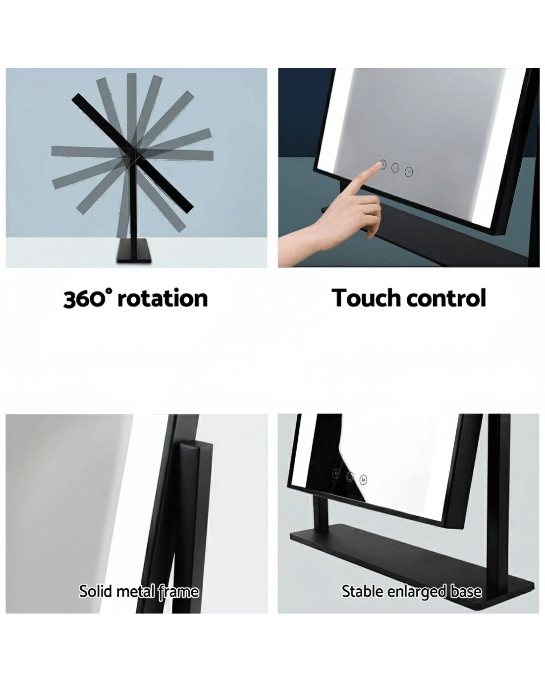 Fairest beauty looks even better with our Embellir Standing Makeup Mirror. Looking very much like a celebrity makeup mirror, our mirror features nine LED bulbs on its slim 2.5cm thick frame. In fact, the entire mirror is almost frameless. The lights can be adjusted for brightness and colour, from cool white to warm white with its touch control, offering a soft and ambient glow to complement your true image. Better still, the mirror is totally rotable and stands on an enlarged base for added stability. Mirror your exceptional countenance with this lovely Embellir Standing Makeup Mirror. Get yours today.