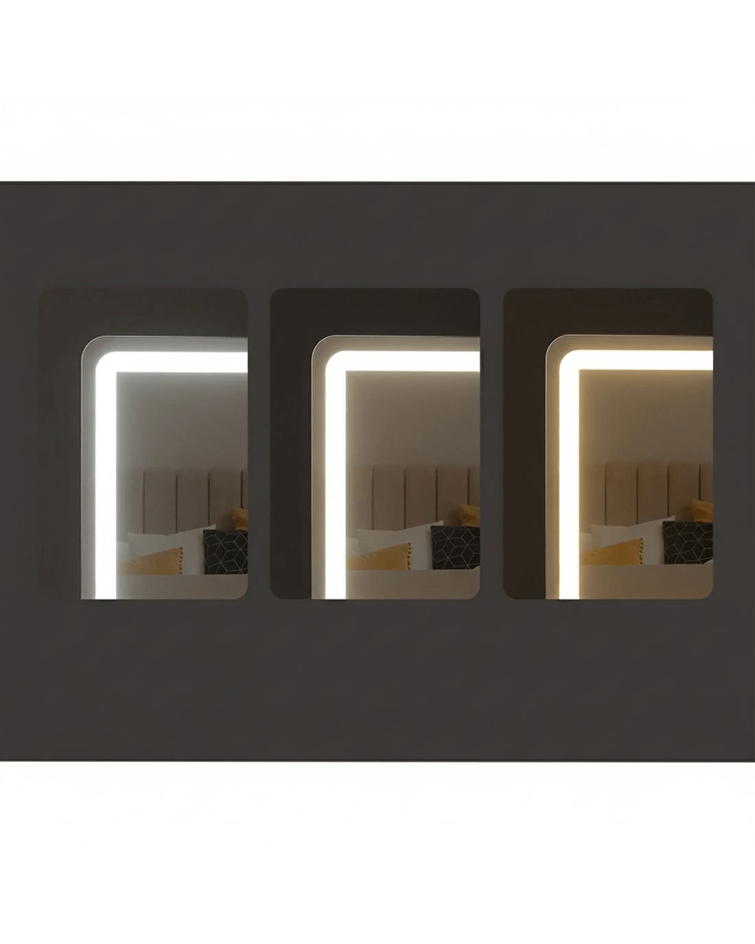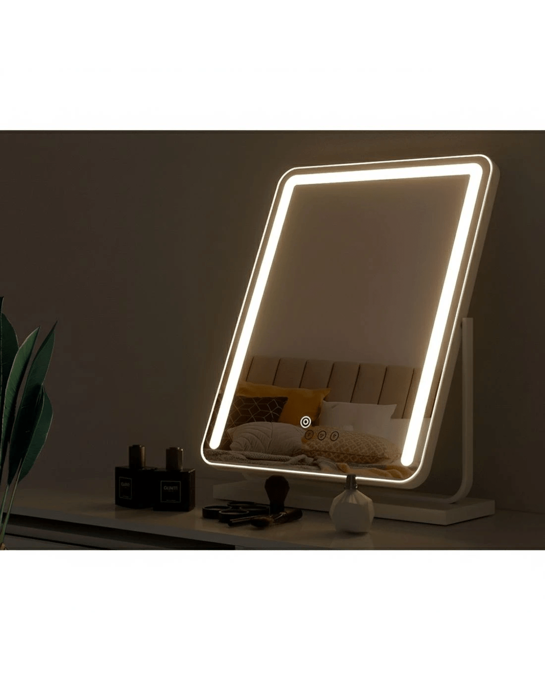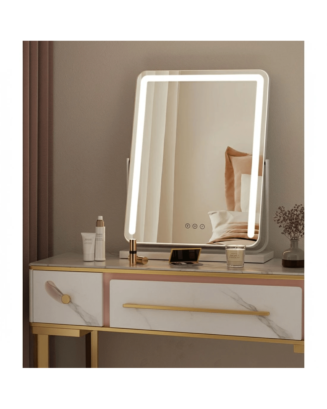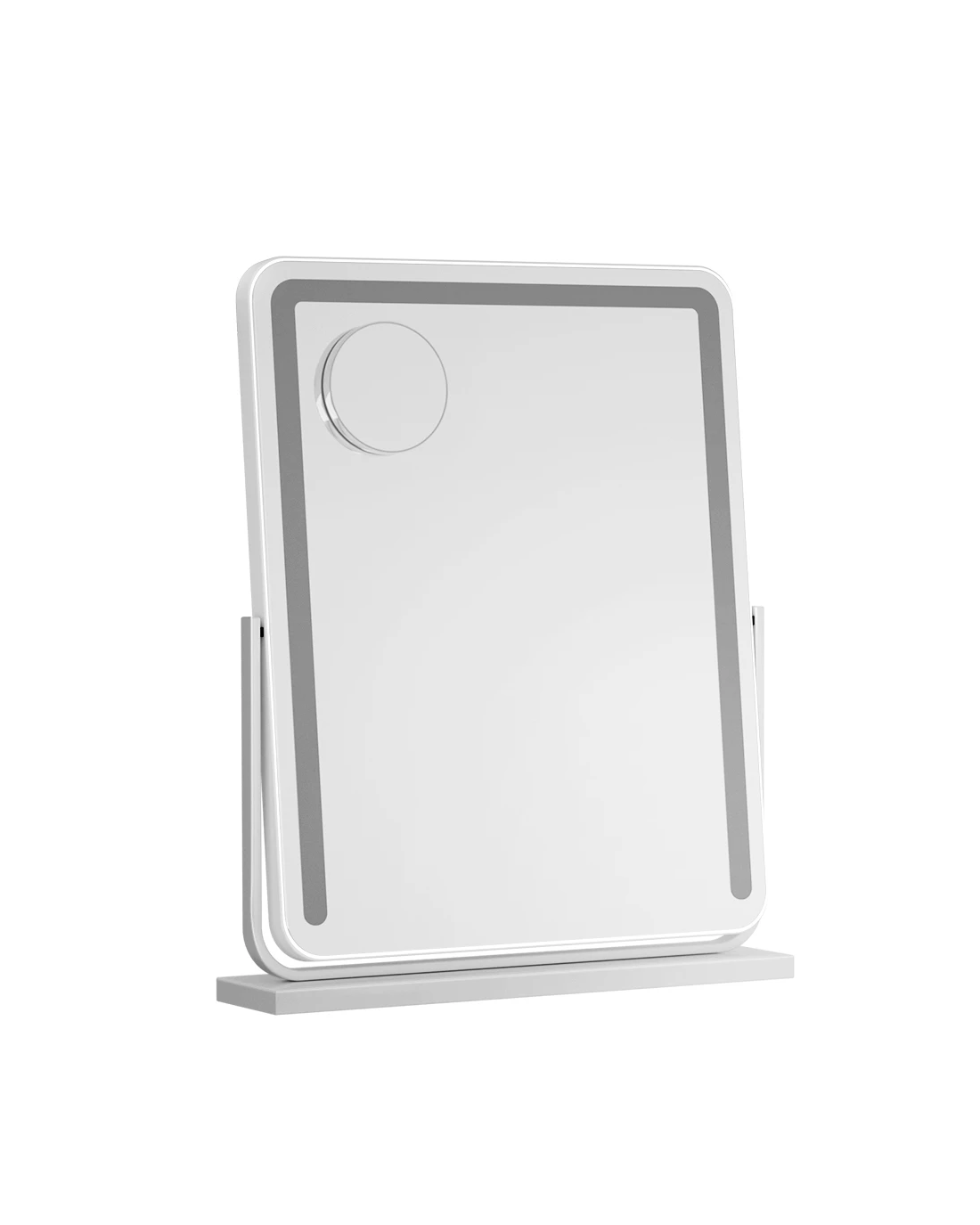 Get the star treatment with our gorgeous Embellir Make-up Mirror. Framed with bright LED bulbs, this mirror really lights up your visage through your daily makeup regimen. The aluminium frame is sturdy, lightweight, and adds a touch of glamour to the entire mirror. The frame sits on an equally smooth powder-coated MDF base for stability and durability. Put it straight on your existing vanity and the base also allows for 180° rotation for the perfect angle every time. Even more wonderful is that the LED light can be easily adjusted for brightness and colour temperature using our intelligent touch controls. Turn your bedroom or bathroom into a celebrity set overnight with our Embiller Make-up Mirror, and enjoy beauty in all its illuminated brilliance.