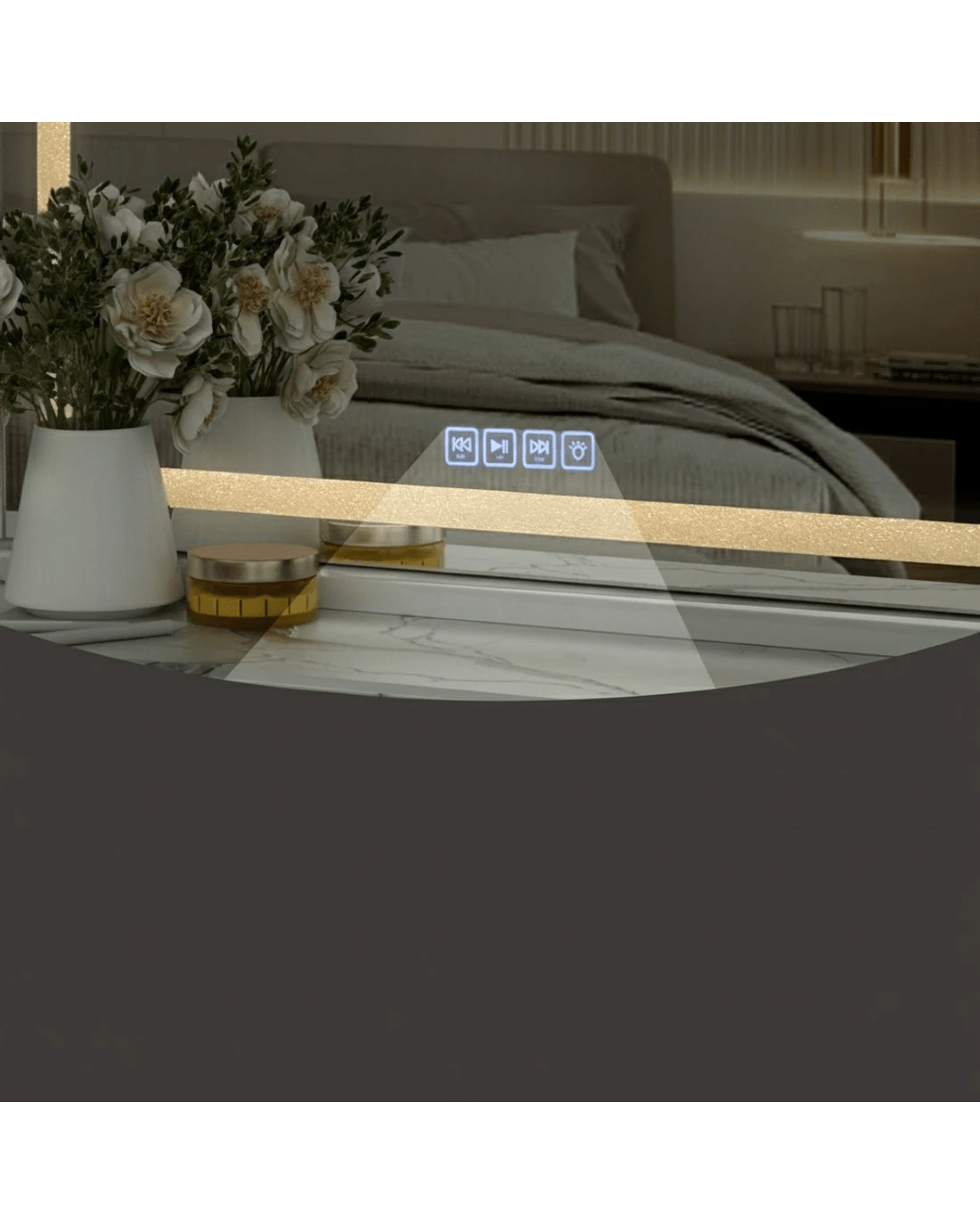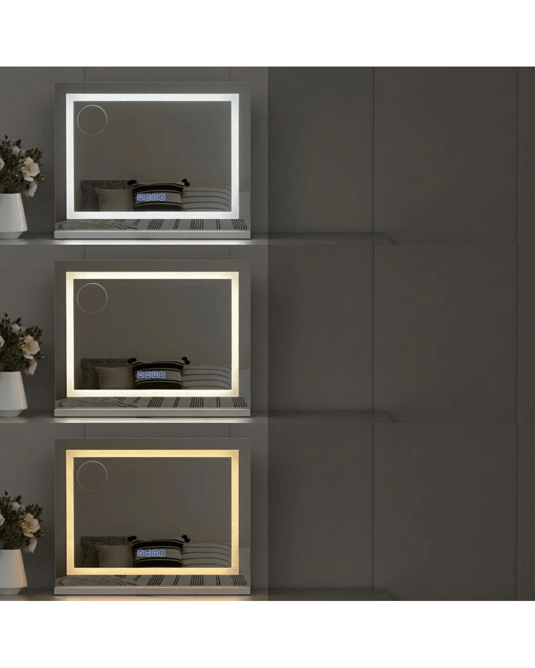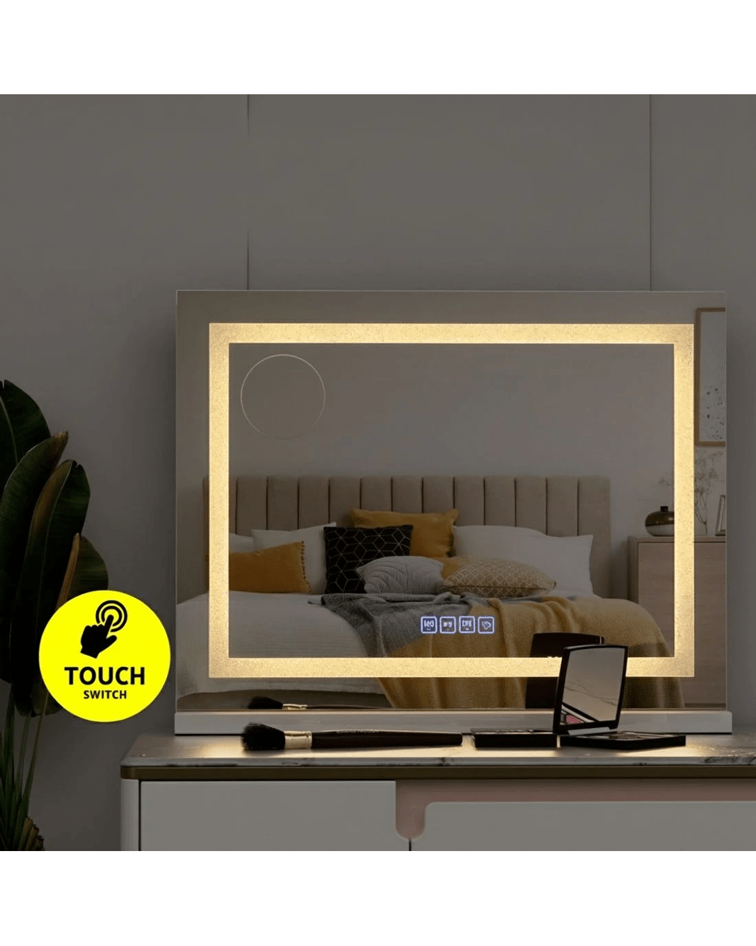 Get the star treatment you deserve with a gorgeous lighted Makeup Mirror from Embellir. Framed by LED light strips, the mirror lights up your visage to accurately complete your makeup routine. The frame is sturdy and lightweight, adding a touch of glamour to the entire mirror. The frame sits on an equally smooth powder-coated MDF base for stability and durability. The base is detachable, so you can choose to wall mount your mirror and save space. The light is easily adjustable using the mirror touch controls. Adjust for brightness and colour temperature including warm light, natural light and cool light. A built-in Bluetooth speaker allows you to listen to your favourite audiobooks, music and podcasts as you go, and the USB charging port can help keep your devices charged at all times. Turn your bedroom into a celebrity dressing room overnight with the Embellir Makeup Mirror.