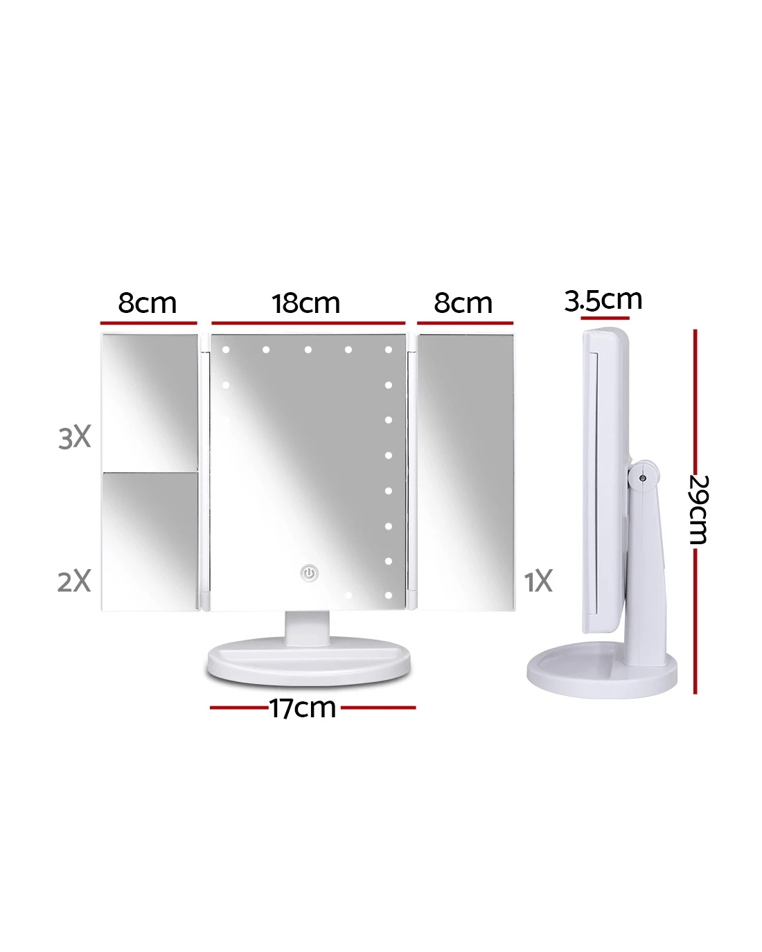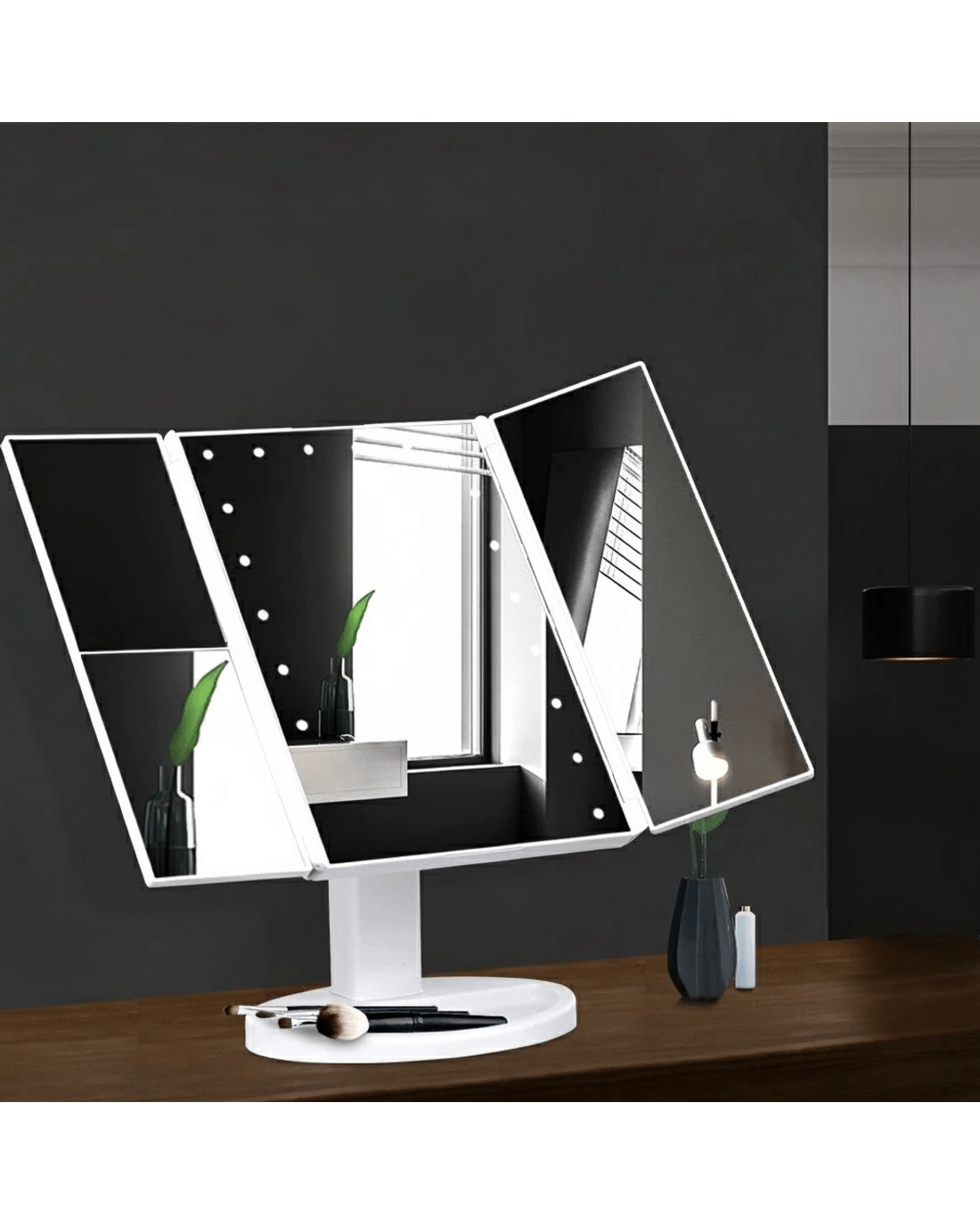 Sold by Aisle SixEmbellir Tri-fold Makeup Mirror 1X2X3X Magnifying with LED Light Travel Portable - Multi