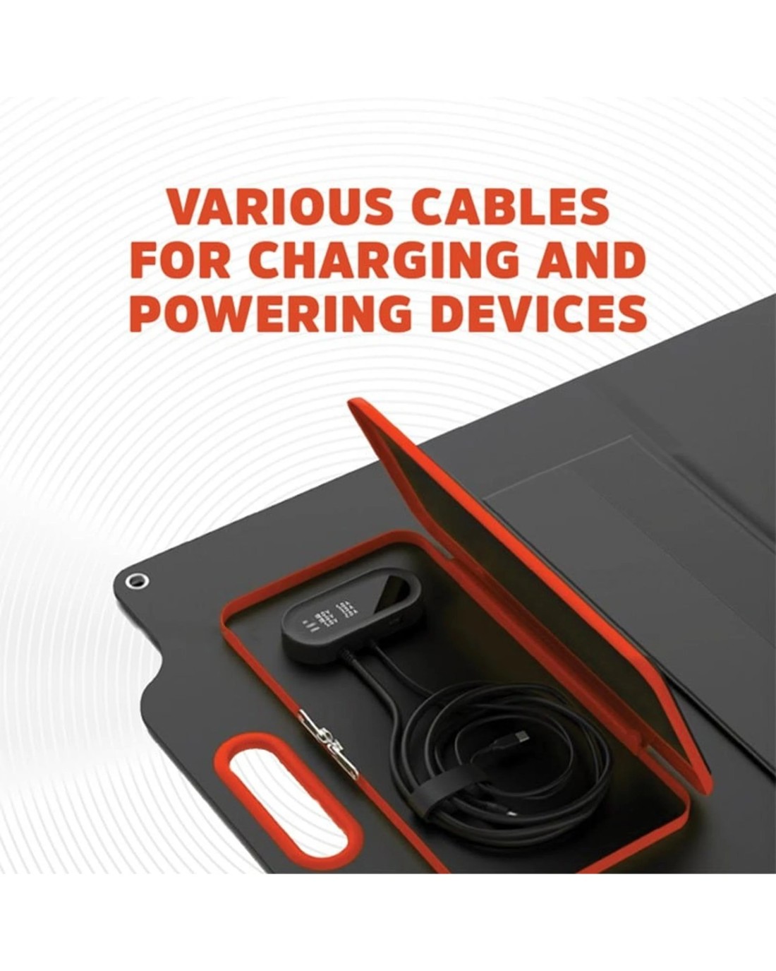 - 1 x Foldable solar panel with 2 x built-in charging cables (USB-C/DC)