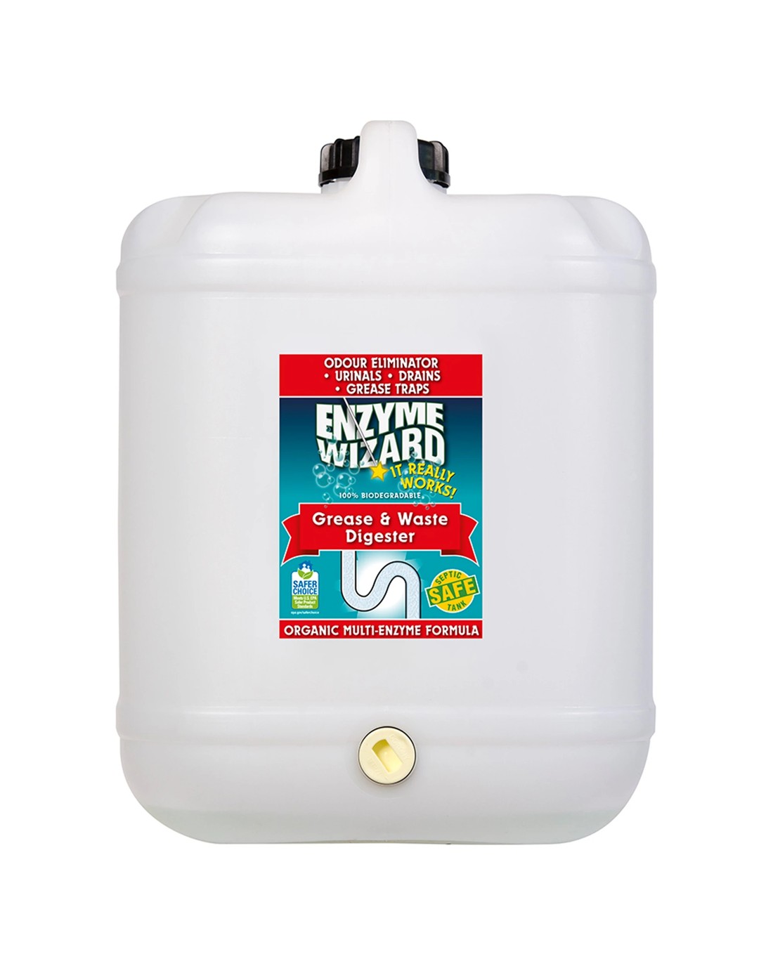The Enzyme Wizard Grease & Waste Digester Cleaner is designed for effectively breaking down grease, fats, and organic waste in drains and grease traps. This 20L biodegradable formula offers a safe and environmentally friendly solution for maintaining clear and odour-free drainage systems.