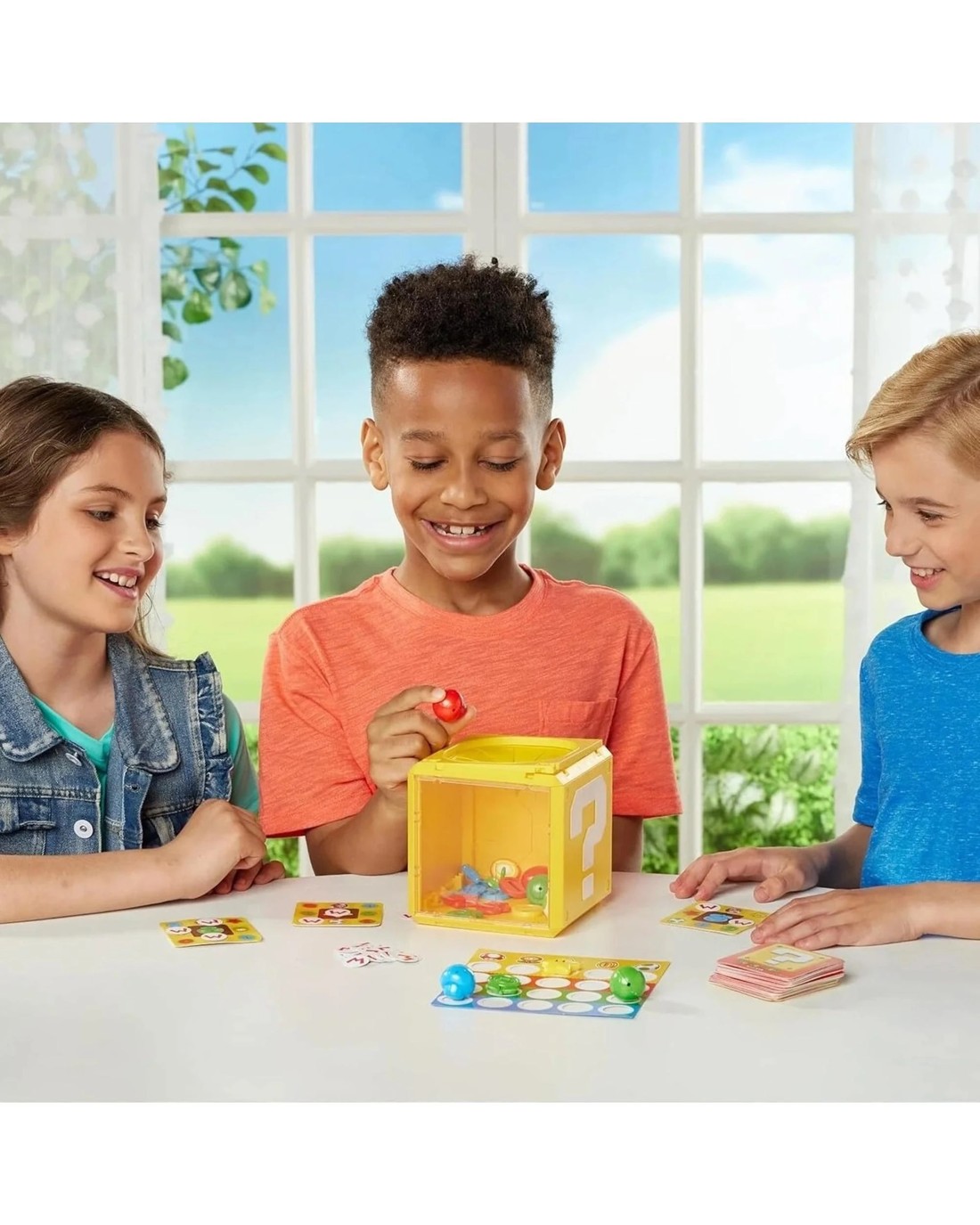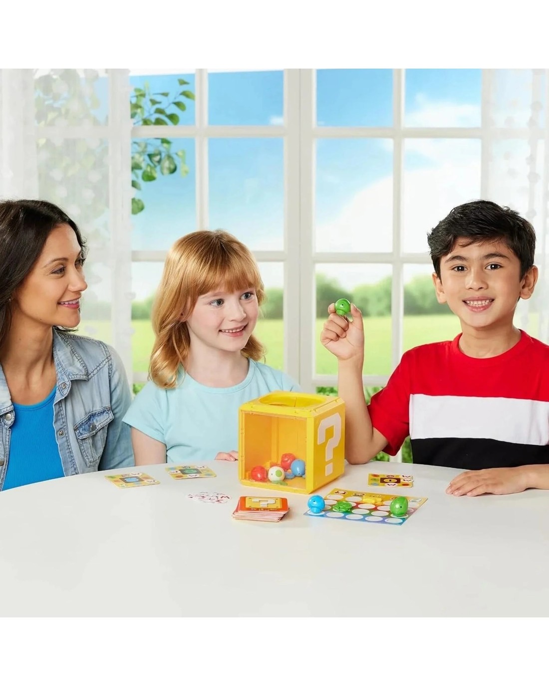 An exciting party game with Question Block from Super Mario! Use your senses to collect the cards by matching the picture with the item! You can remove the question block sheet and other players can comment by looking at the items through the transparent window. But be careful! You never know which player is telling the truth or not! Simple rules, with multiple ways to play: Game 1: Draw a card and find the object depicted on it in the box to win the card. Game 2: Remove the sheet from the question block so that your opponents can guide you by looking at the objects through the transparent window. Be careful! Don't be fooled by your opponent because he can tell you the truth or lie to you! Game 3: Play Bingo and be the first to fill a line of objects on your card. Ages: 4 + | Players: 2 - 6