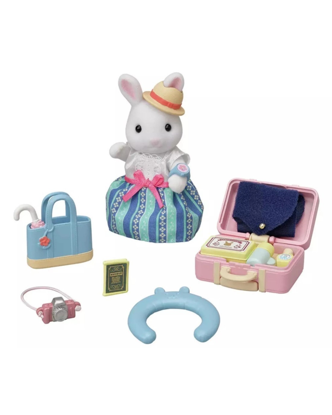 The Weekend Travel Set contains Snow Rabbit mother Emilia in an exclusive outfit, plus a suitcase, handbag, neck pillow, and travel accessories. Pack the suitcase and handbag for pretend travel play. The suitcase wheels rotate and the handle can be moved up and down. The neck pillow can be placed on the included figure. The Sylvanian Families live in the idyllic world of Sylvania and encourage traditional family life play incorporating houses, furniture, accessories and memorable characters all with incredible detail that you'll love. Ages: 3 +