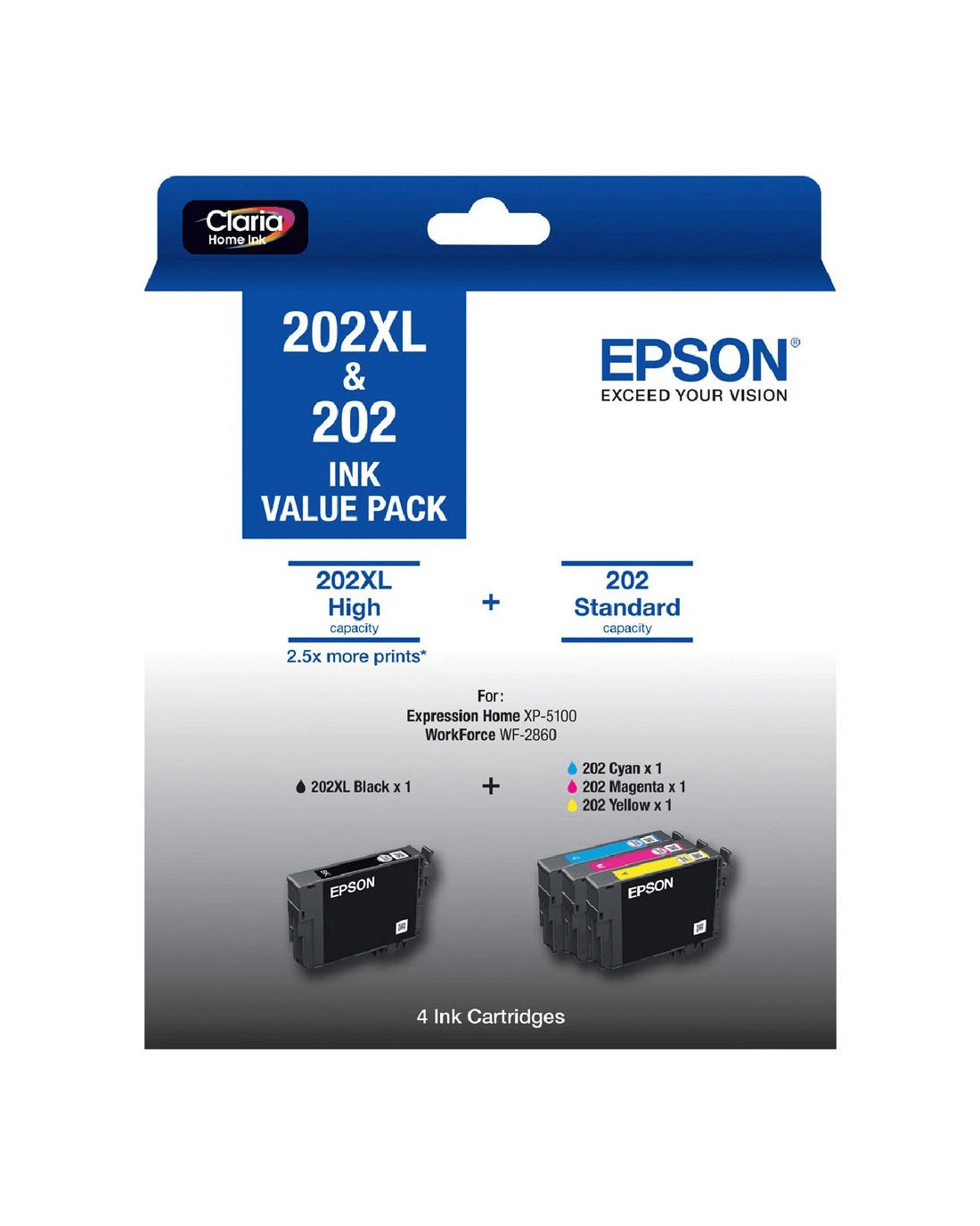 Sold by OfficeworksEpson 202XL Black and Standard Ink Cartridge 4 Pack