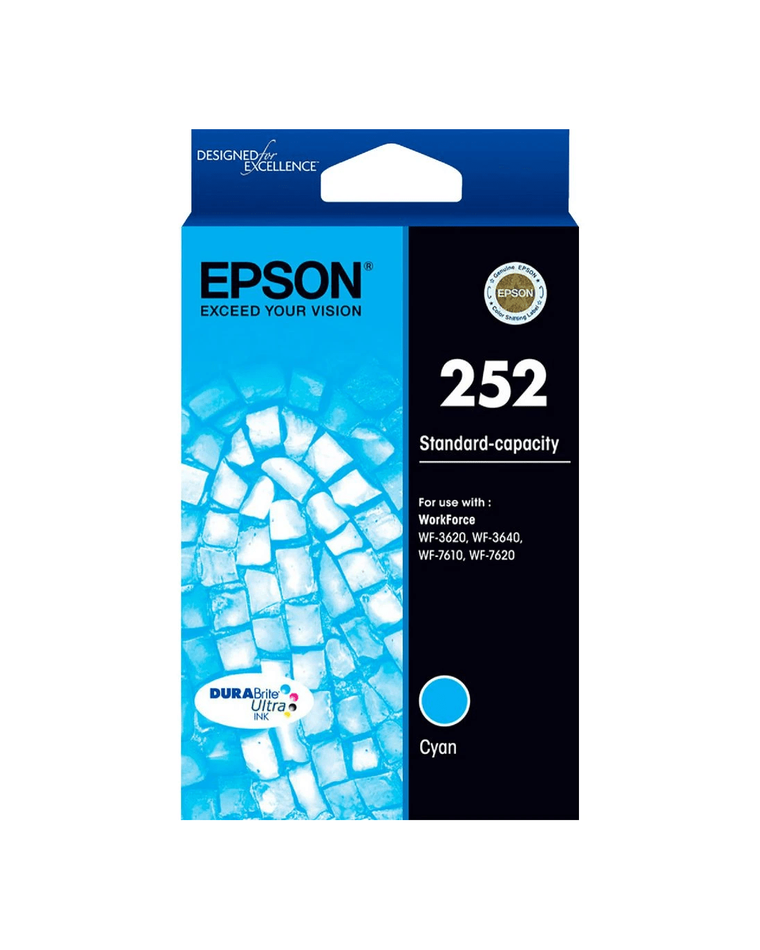 Epson 252 Ink Cartridges use DURABrite Ultra ink which is a 4 colour pigment based ink technology that delivers brilliant, ultra-sharp detail on plain and specialty papers. These fast drying inks deliver durable prints that are water, fade and smudge-resistant and highlighter friendly too.