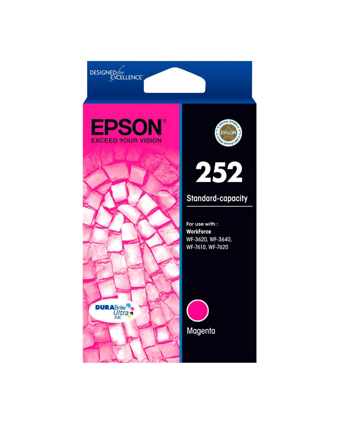Epson 252 Ink Cartridges use DURABrite Ultra ink which is a 4 colour pigment based ink technology that delivers brilliant, ultra-sharp detail on plain and specialty papers. These fast drying inks deliver durable prints that are water, fade and smudge-resistant and highlighter friendly too.