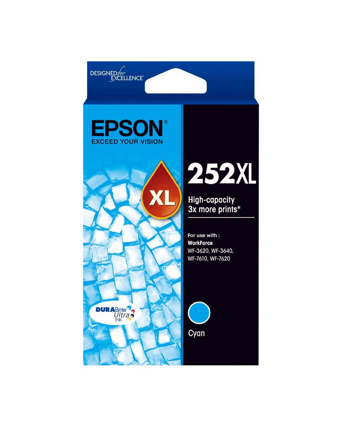 Epson 252XL Ink Cartridges use DURABrite Ultra ink which is a 4 colour pigment based ink technology that delivers brilliant, ultra-sharp detail on plain and specialty papers. These fast drying inks deliver durable prints that are water, fade and smudge-resistant and highlighter friendly too.