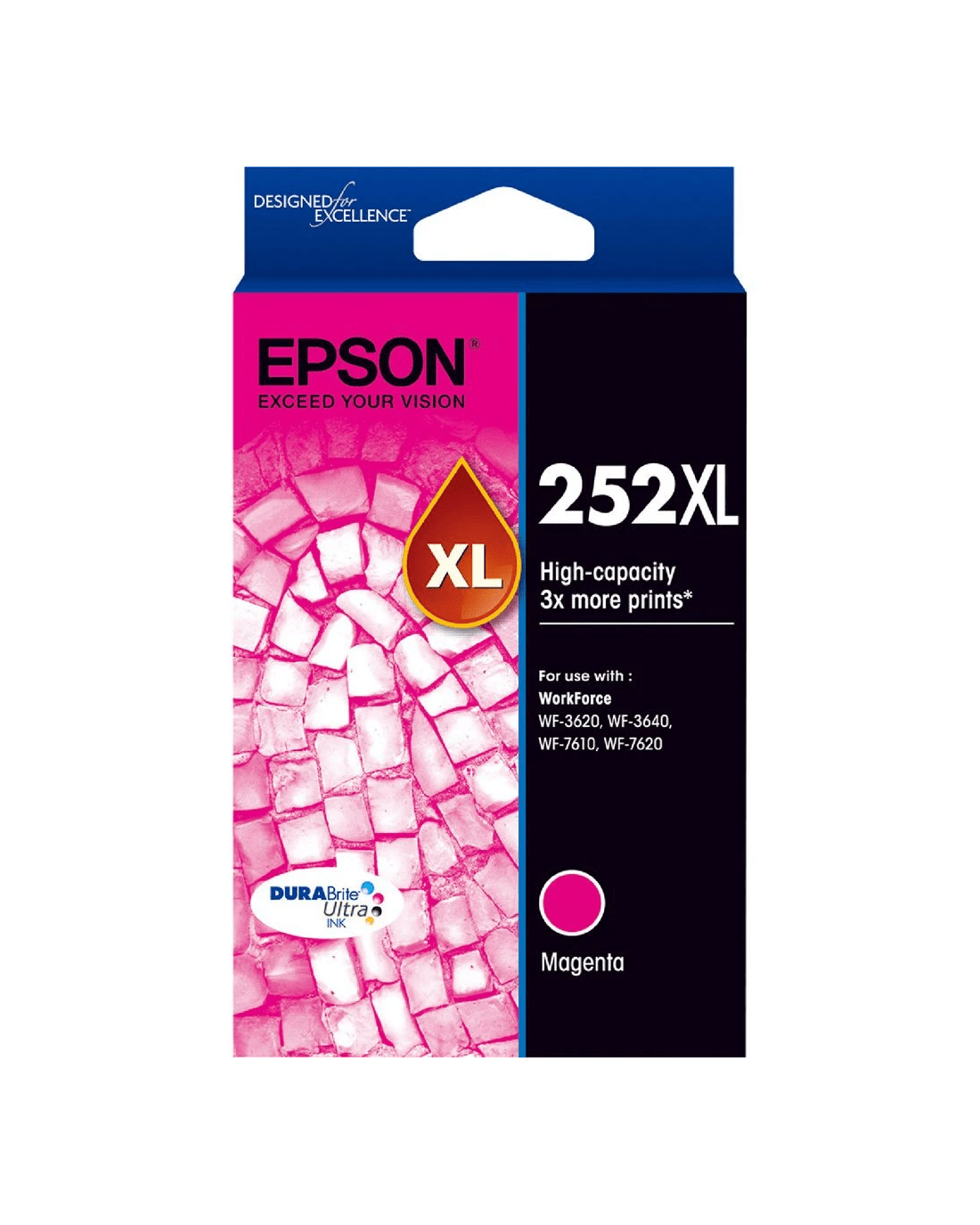 Epson 252XL Ink Cartridges use DURABrite Ultra ink which is a 4 colour pigment based ink technology that delivers brilliant, ultra-sharp detail on plain and specialty papers. These fast drying inks deliver durable prints that are water, fade and smudge-resistant and highlighter friendly too.