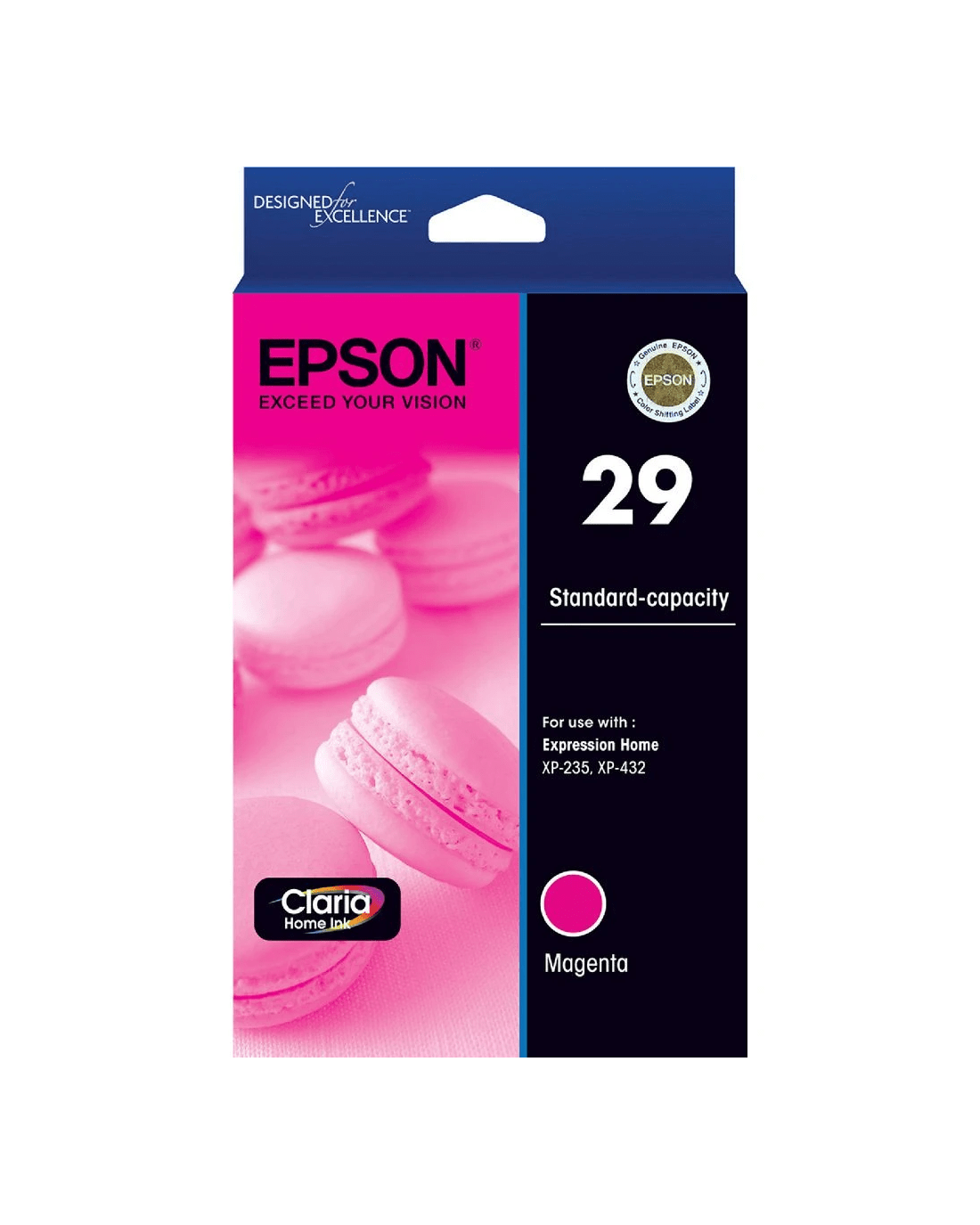 Epson 29 Ink Cartridges are specially formulated for use with your compatible Epson printer to deliver professional quality prints which resist fading and smudging. Each cartridge uses Claria Photographic Ink, which is designed for high definition photo prints, offering outstanding colour reproduction.