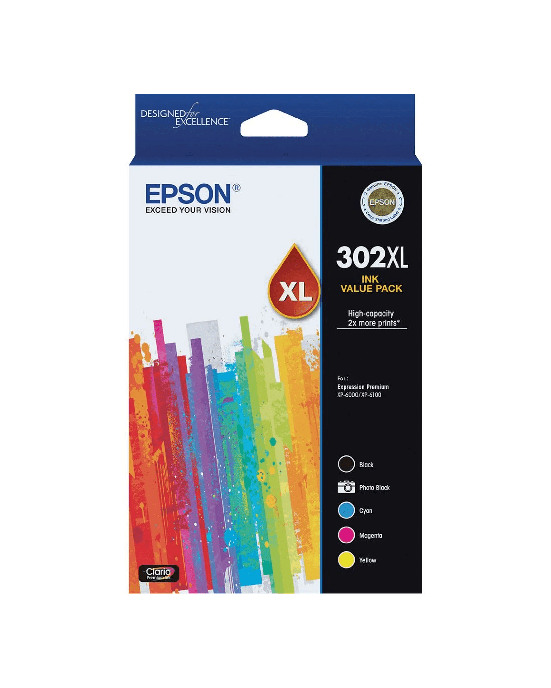 This Epson 302XL Value Pack contains 5 cartridges including black, photo black and 3 colours so you can stock up at once. The photo black cartridge contains pigment ink and is perfect for printing documents and photos.