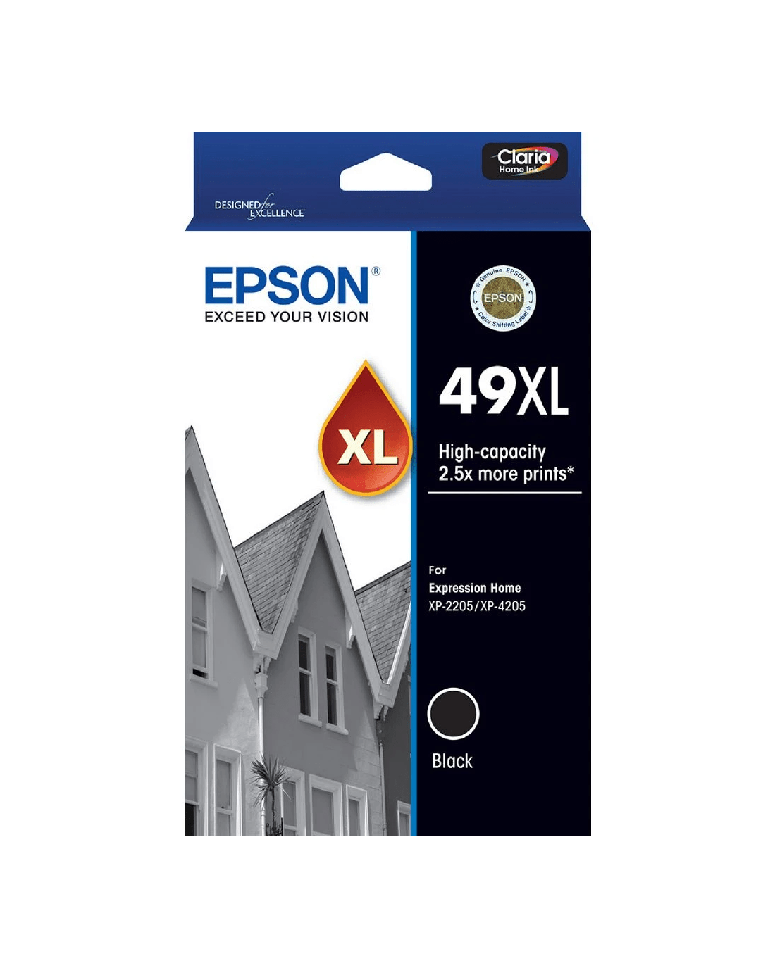 This Epson 49XL Ink Cartridge is designed to deliver crisp, clear text documents and glossy, lab-quality photos. Ideal for affordable, reliable printing without compromise. This high yield cartridge is compatible with Epson XP-2205 and XP-4205 Ink-Jet printers.