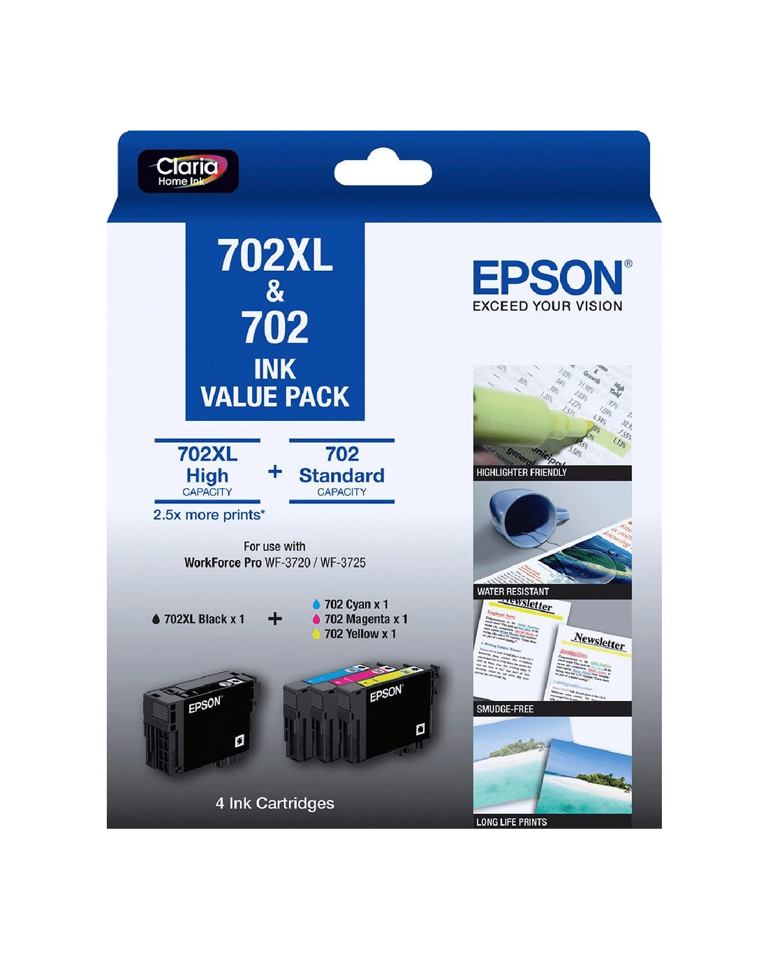 Sold by OfficeworksEpson 702 and 702XL 4 Colour Ink Cartridge Value Pack