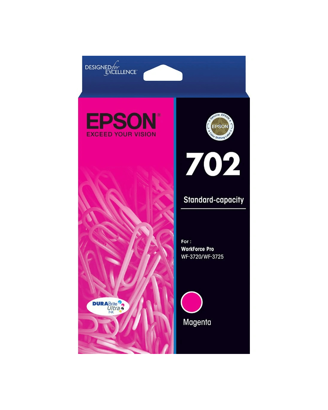 This Epson 702 Ink Cartridge has been designed to produce high quality printouts with sharp, clear and accurate text and imagery. The pigment-based ink utilises DURABrite technology which makes your prints and documents less prone to fading.