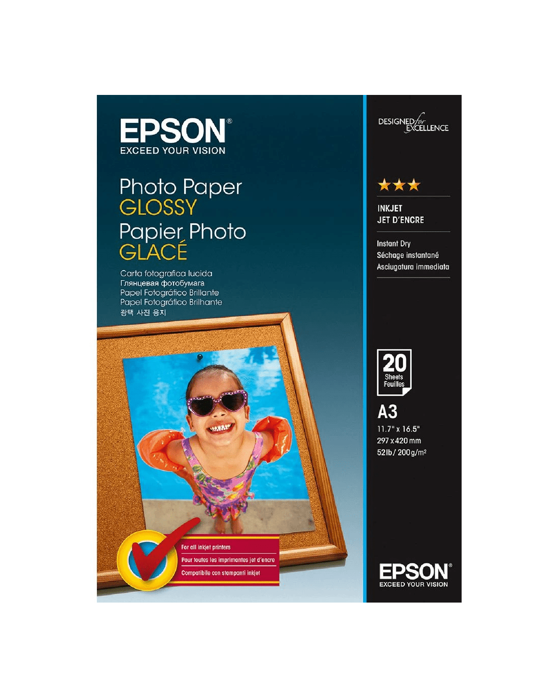 This Epson Glossy Photo Paper delivers glossy photos for use at home, school or at work. The paper dries fast and is smudge-resistant so you can start using your photos straight away. The brilliant colour quality is clear and vivid, bringing your photos to life.