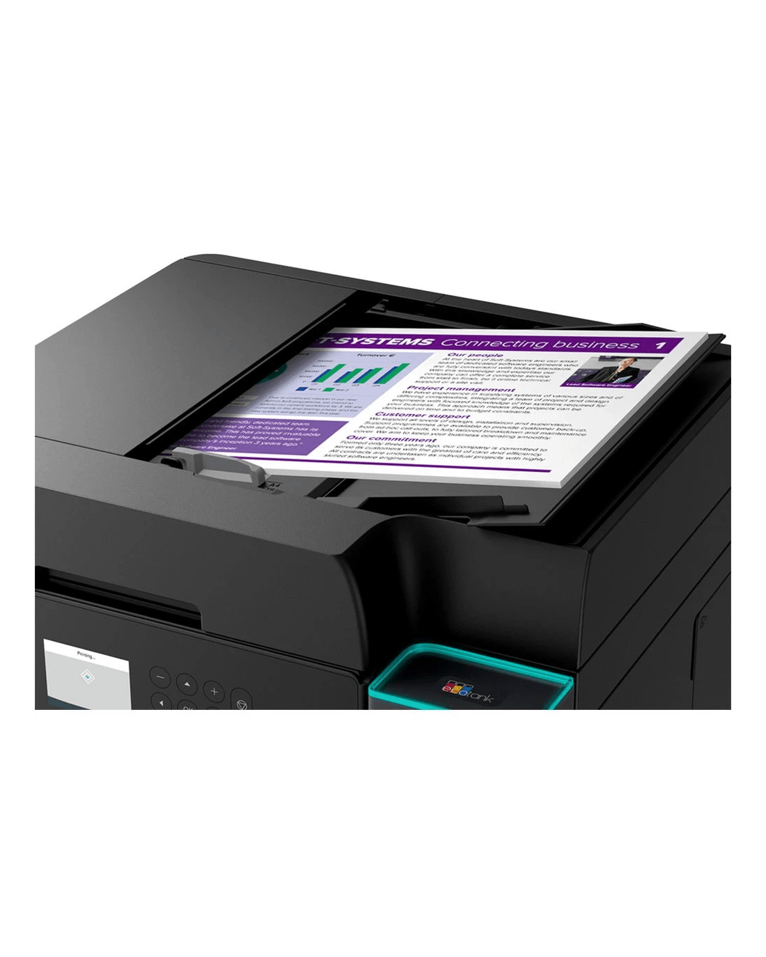 - With the Epson EcoTank Colour MFC ET-3950 you can print, copy and scan your documents.