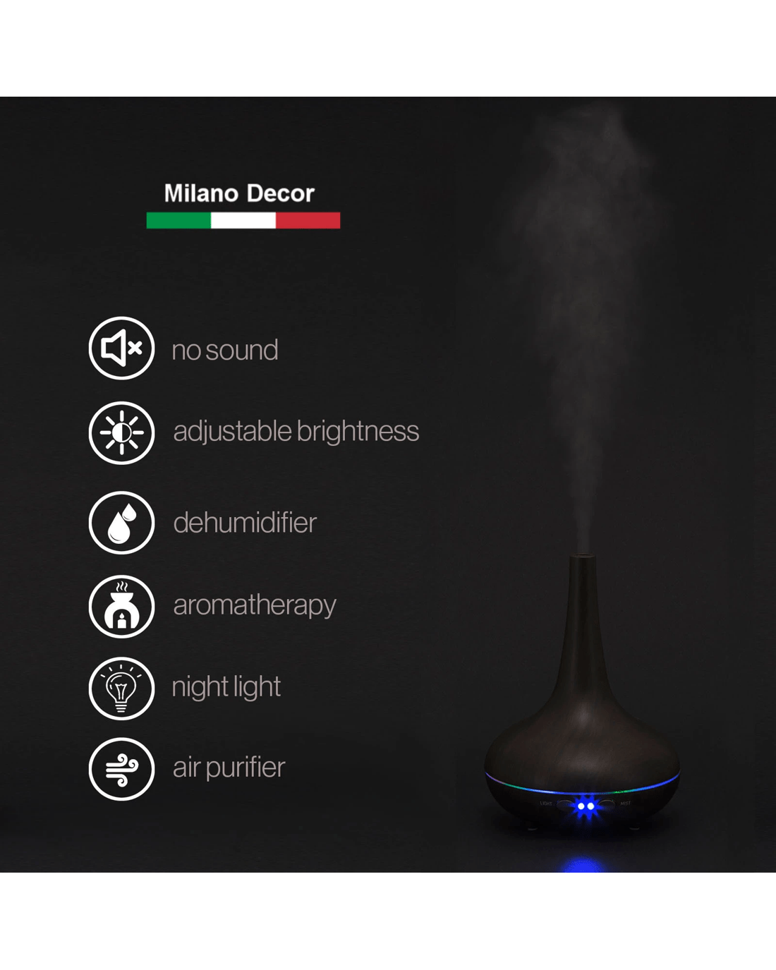 Sold by ABM GlobalEssential Oil Diffuser Ultrasonic Humidifier Aromatherapy LED Light 200ML 3 - Brown