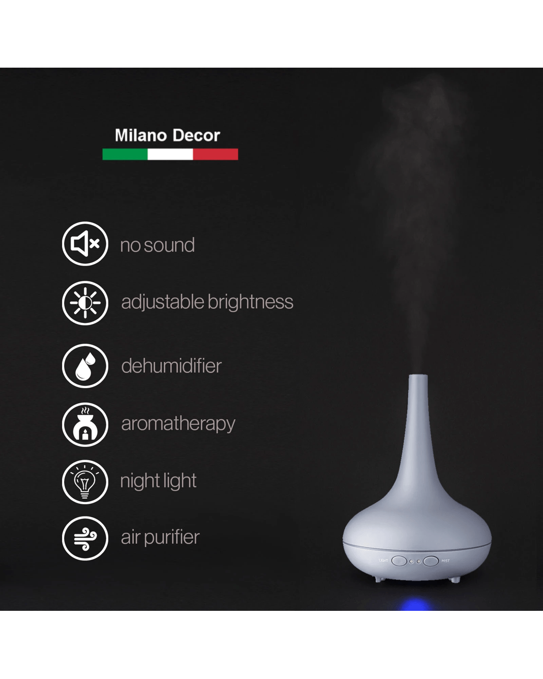 Sold by ABM GlobalEssential Oil Diffuser Ultrasonic Humidifier Aromatherapy LED Light 200ML 3 - Grey