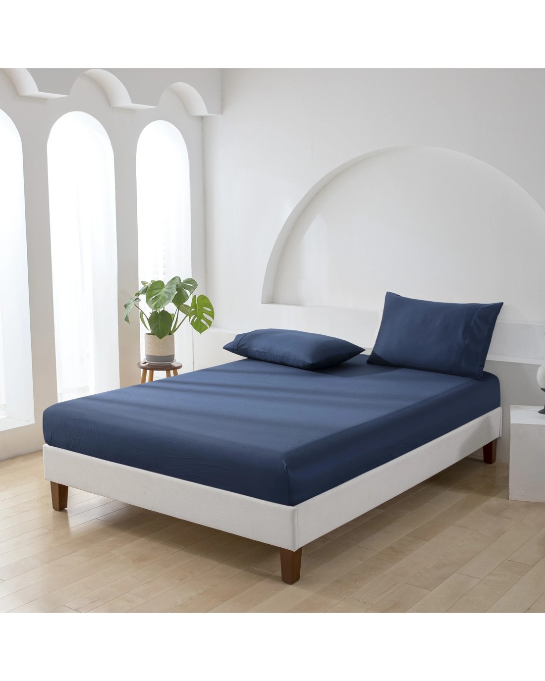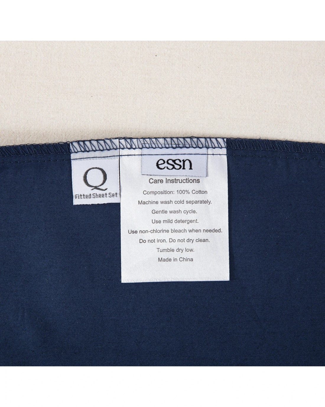ESSN 500TC Cotton Sateen Fitted Sheet Set - King Bed - Navy