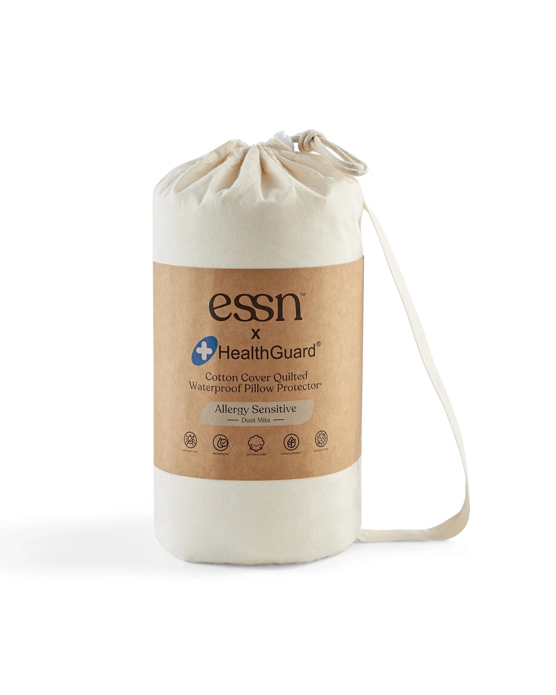 The ESSN HealthGuard Allergy Sensitive Standard Pillow Protector offers superior protection against dust mites, allergens, and moisture, ensuring a cleaner and healthier sleep environment. Made with a soft cotton cover and diamond quilted waterproof design, it provides extra comfort while keeping your pillow fresh. The zip closure ensures a secure fit, while the machine washable fabric makes maintenance easy. Standard, King, Euro, and V-Shape 2-pack, it's perfect for everyday use and allergy-sensitive sleepers.