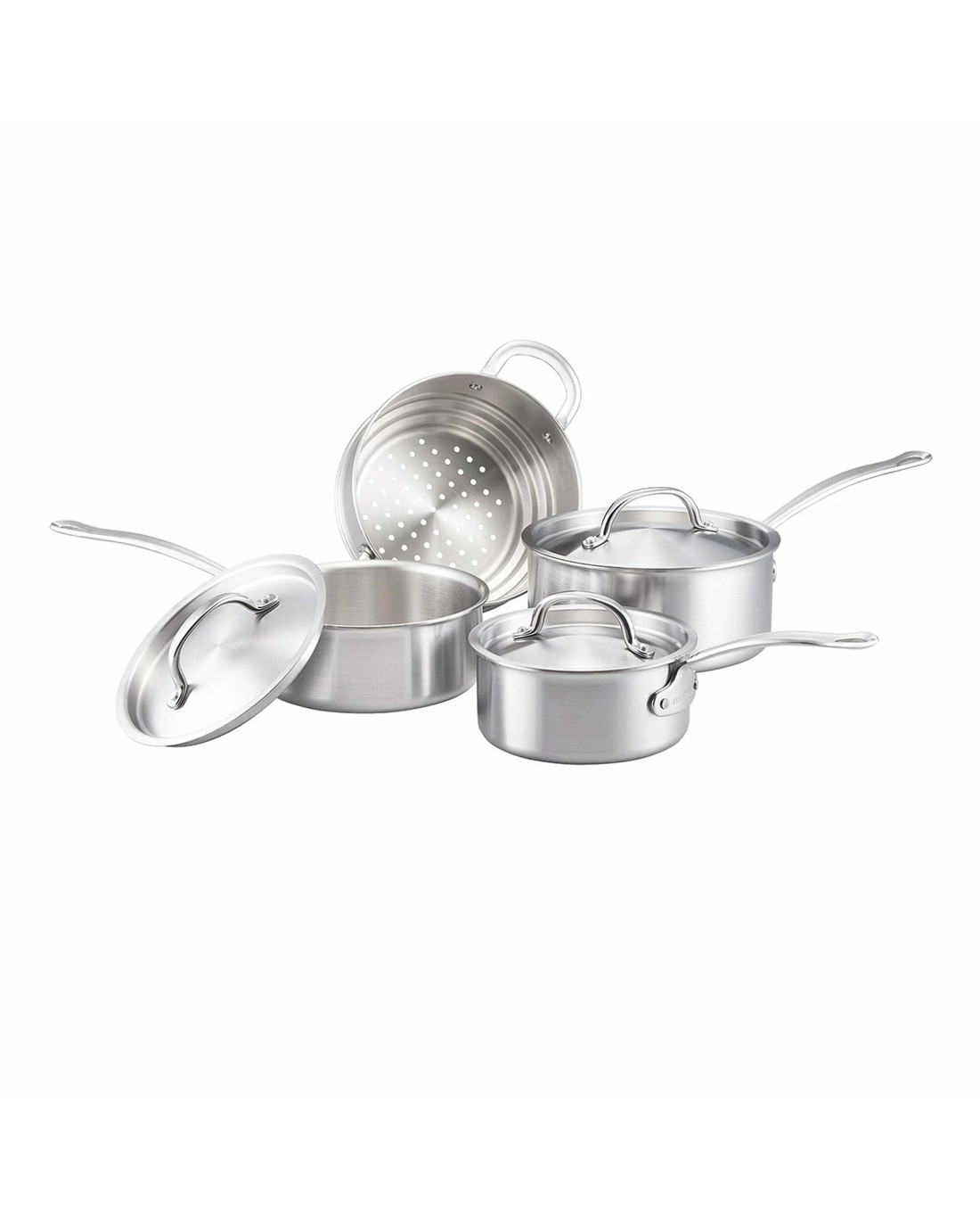 This 4 piece cookware set contains three generously sized saucepans and a universal multi-fit steamer for ultimate versatility.
