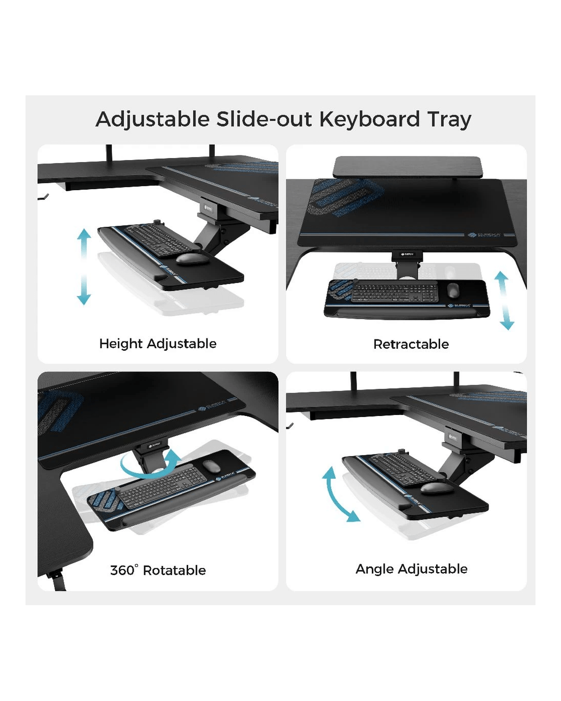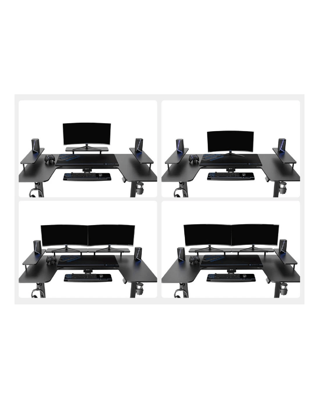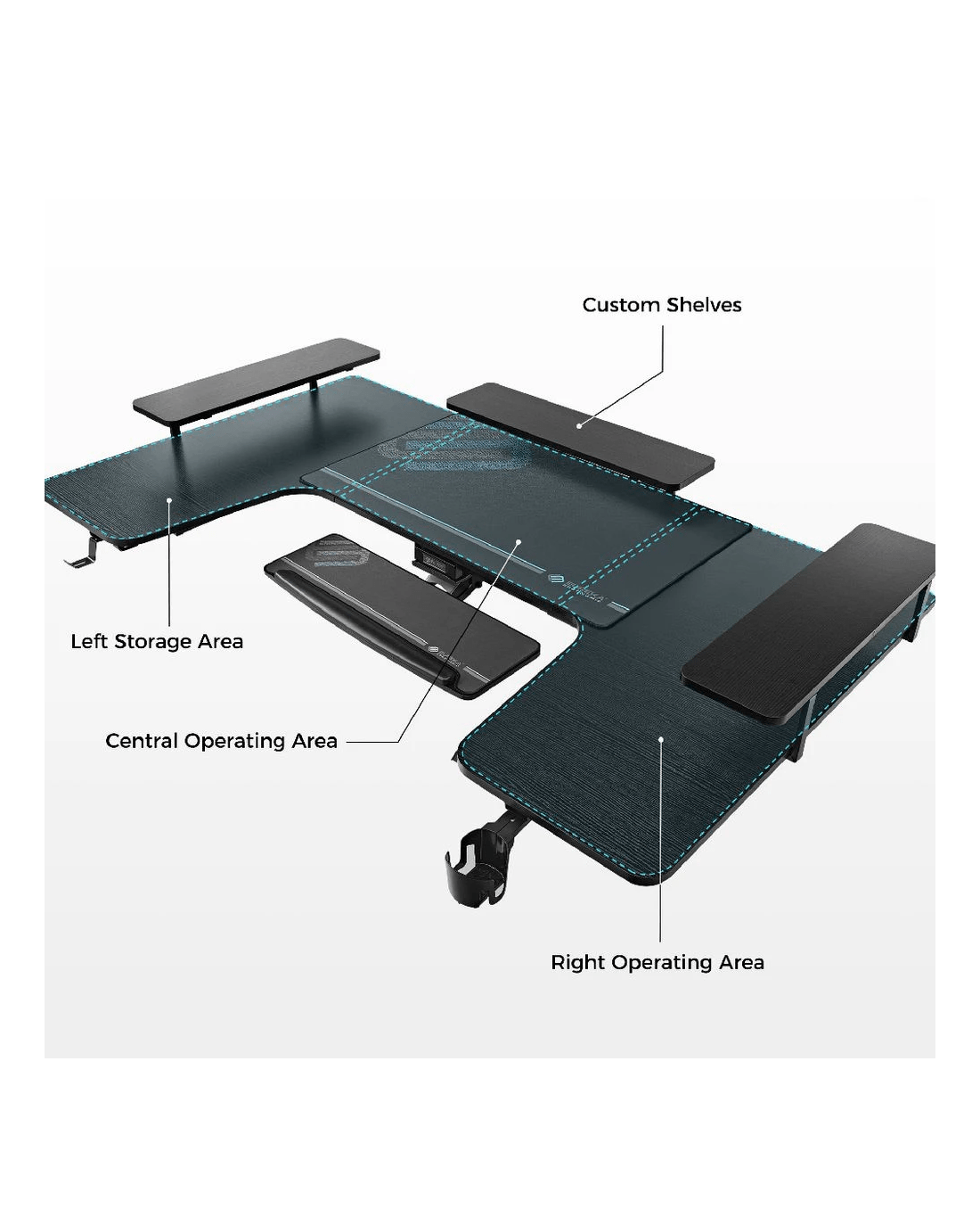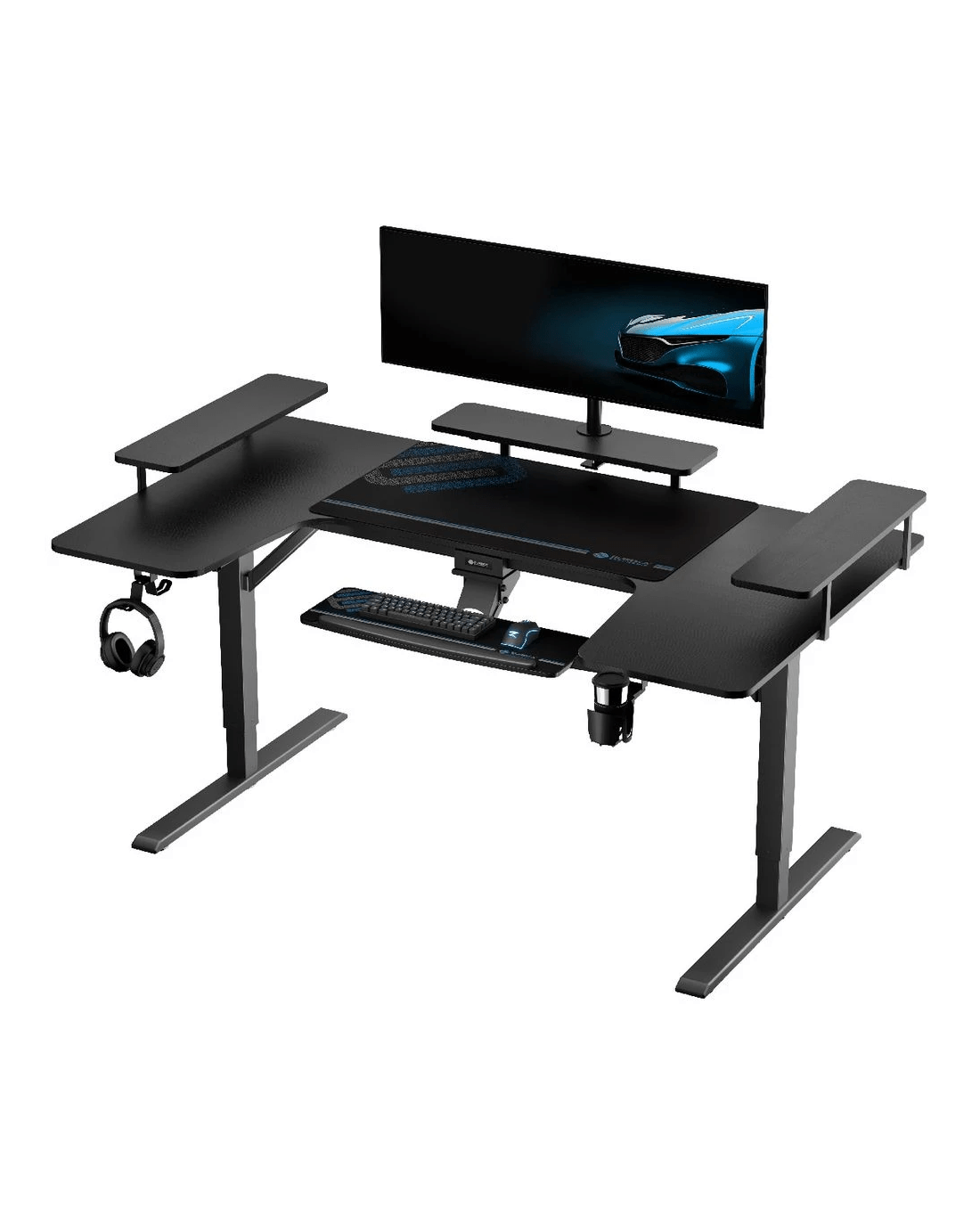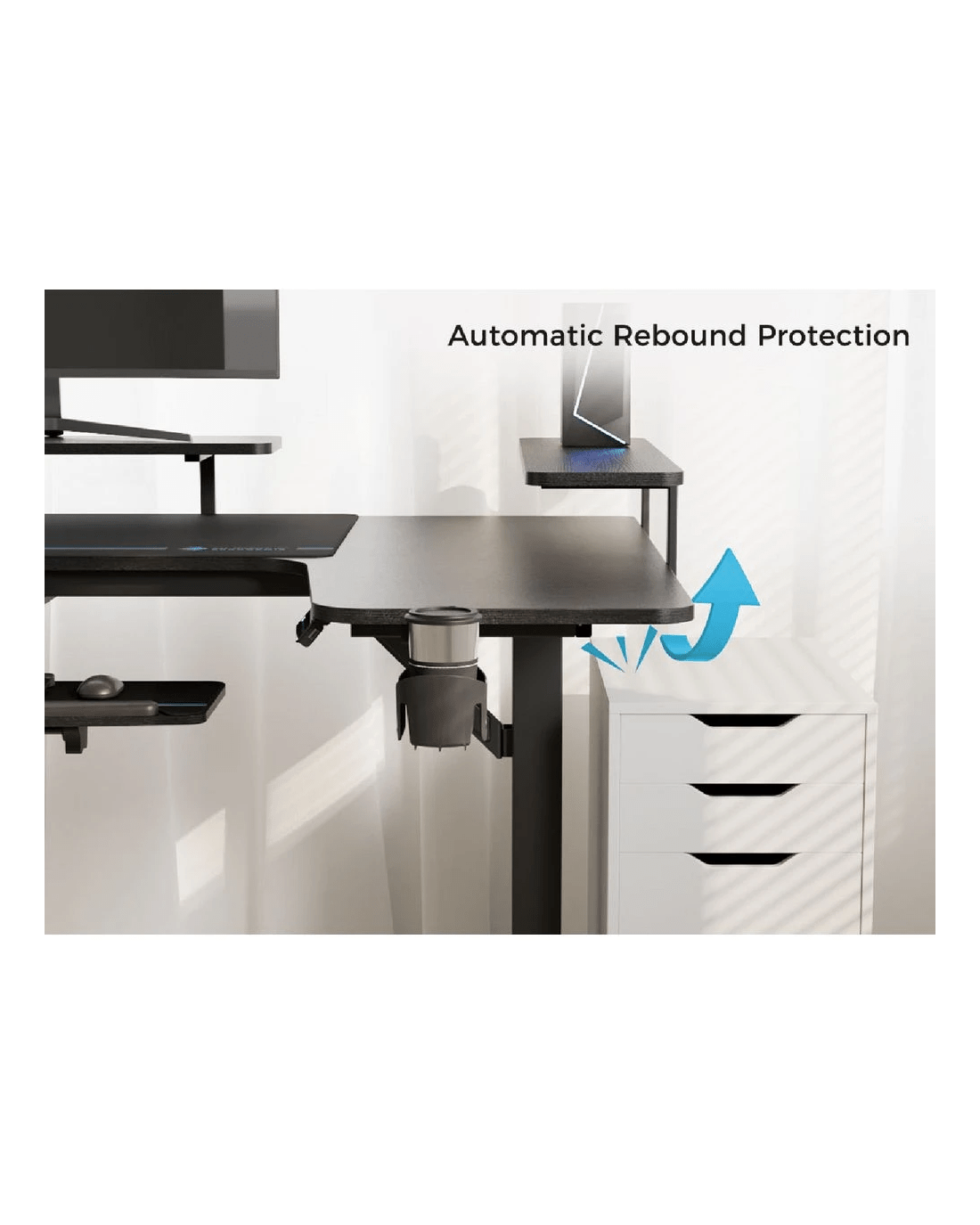 This Eureka U-Shaped Sit Stand Desk is perfect for long sessions of gaming, working, streaming or anything else you do at your computer. The U-shaped desk design makes it easy to reach and grab what you want, while an advanced dual motor system generates enough power to lift the computer desk smoothly, evenly, and quietly. It comes with RGB LED lights with 6 colours and 1 white light with built-in controls so you switch easily from battle mode to work mode.