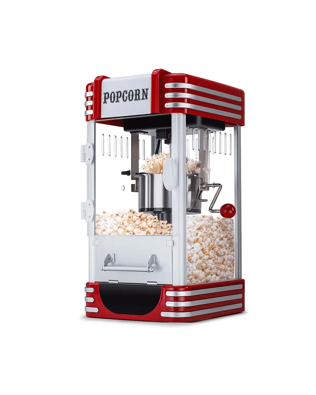 With 310W of heating power, this appliance features an illuminating light that gives a real cinema feel. It has a transparent casing and access hatch so you can see all the popping action as it’s happening. Simply place the raw popcorn into the stainless steel kettle and watch fresh, hot popcorn burst out of the flip lids just like at the theatre! Then use the crank handle to load up your bowl - ready for an authentic cinematic experience in your lounge room.