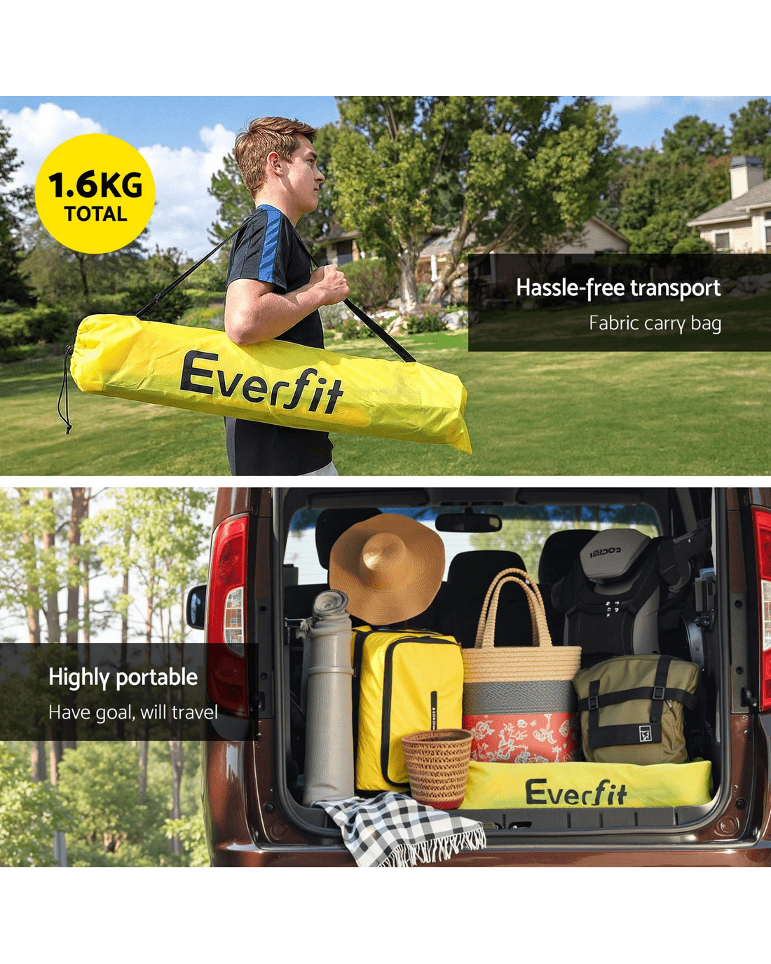 Everfit 2m Football Soccer Net Portable Goal Net Rebounder Sports Training - Yellow