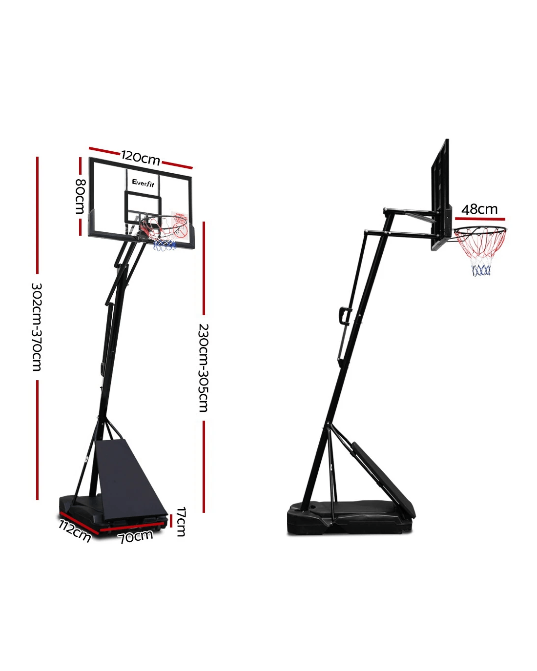 Adjustable height- 2.3m to 3.05m (Full Regulation Height)