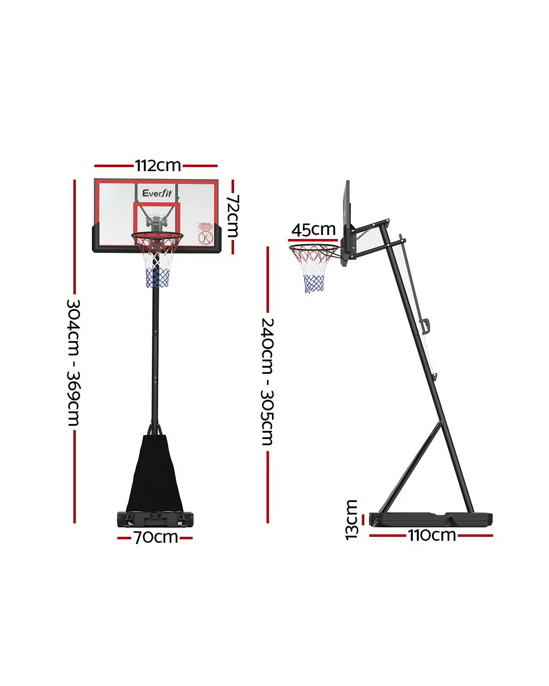 Sold by Aisle SixEverfit 3.05M Basketball Hoop Stand System Adjustable Height Portable Red Pro - Red