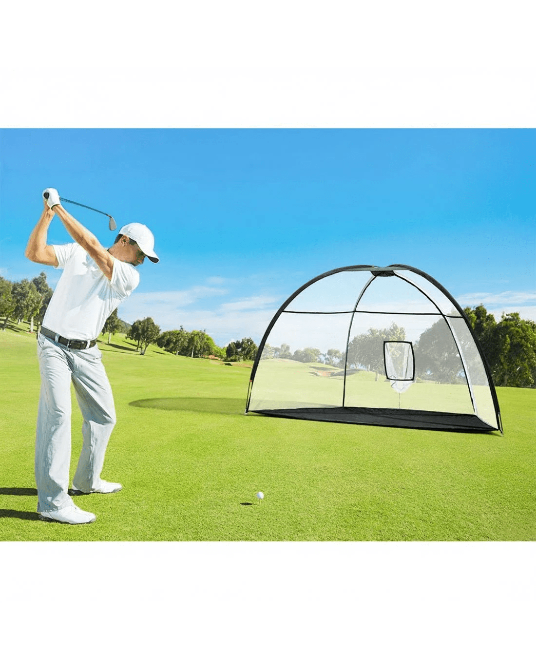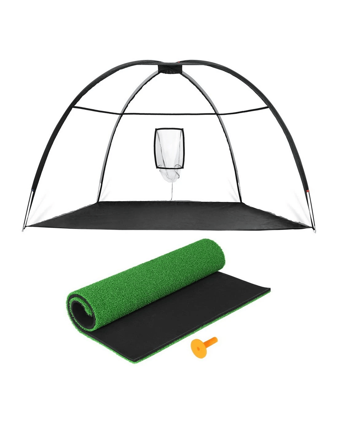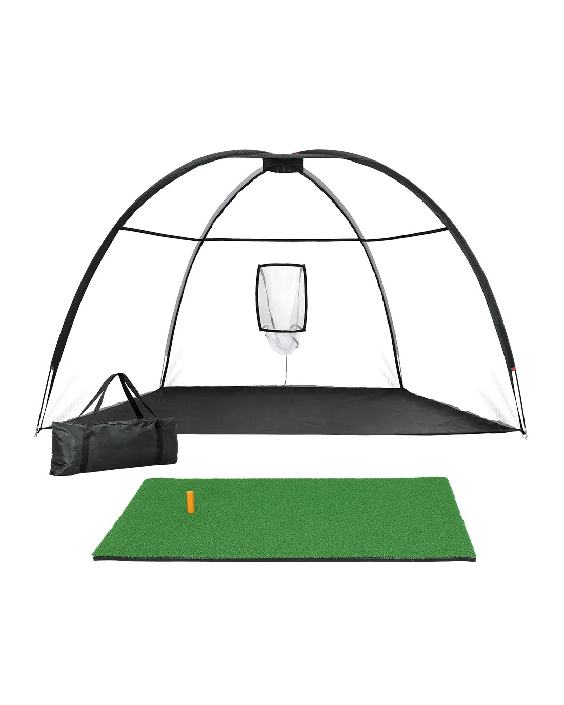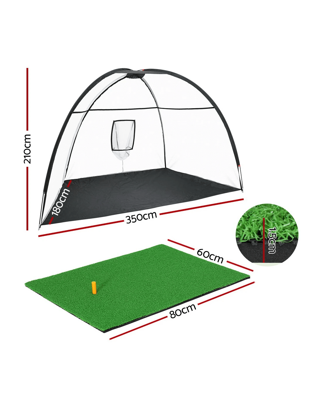 Looking to improve your game? Practice your swing in the comfort of your own home with the Everfit 3.5M Golf Practice Net with Mat. Lightweight and portable, you can install the golf net anywhere, whether you are practicing indoors or outdoors. Made from durable 80G mesh with a fibreglass frame, so you know it will withstand your daily training regime. Features a wide opening for easy ball capture, and a large bullseye target to help improve your accuracy. It is easy to set up and stands stable for the duration of your training. Suitable for beginners and experts alike, the mat can be used anywhere to practice thanks to its portable and foldable design. The mat uses quality faux PP grass that is fade and UV resistant to simulate a real putting green. The non-slip base will keep the mat in place while you game offer additional protection. The mat contains a pre-drilled hole for your golf tee, so you know where to place it every time.