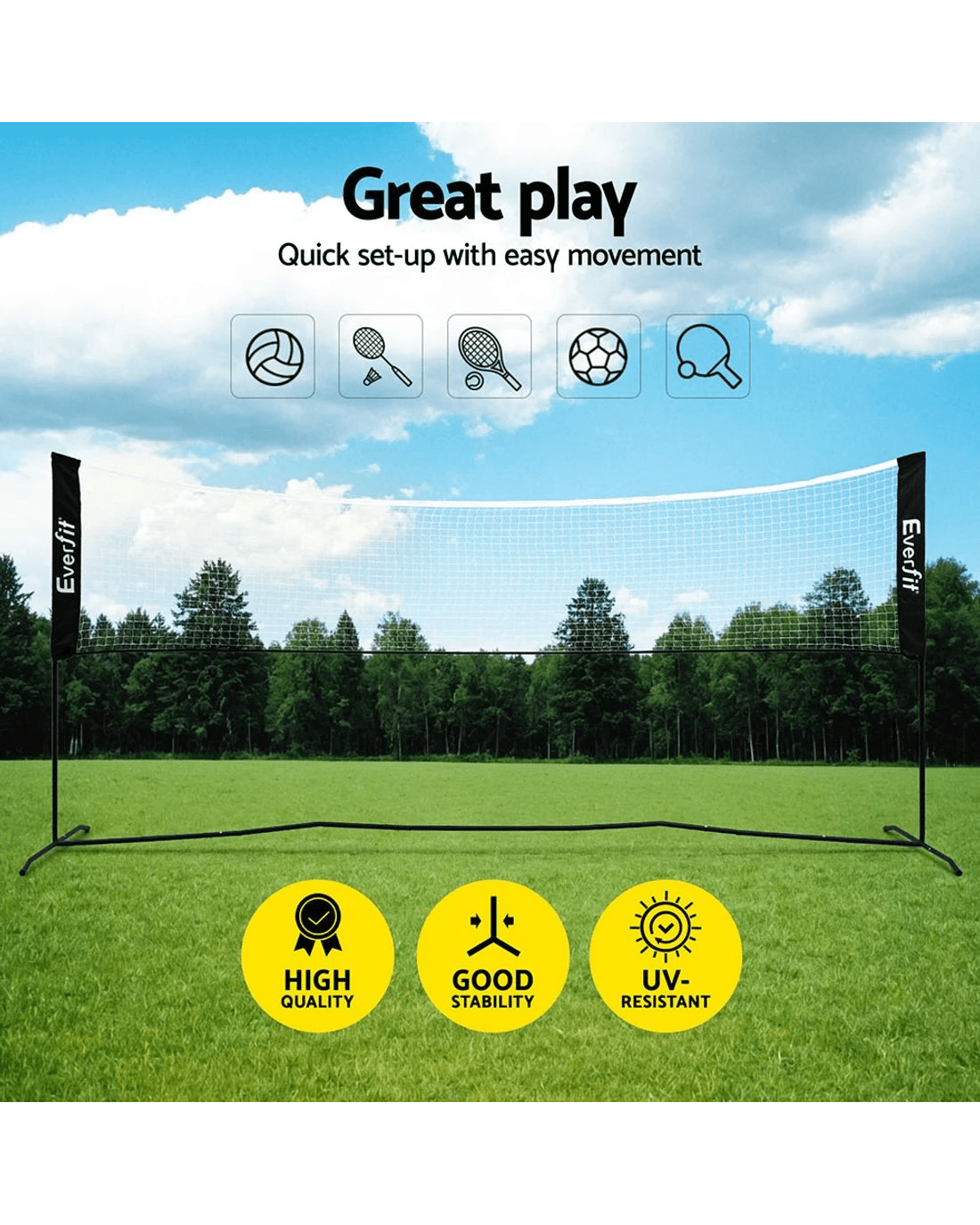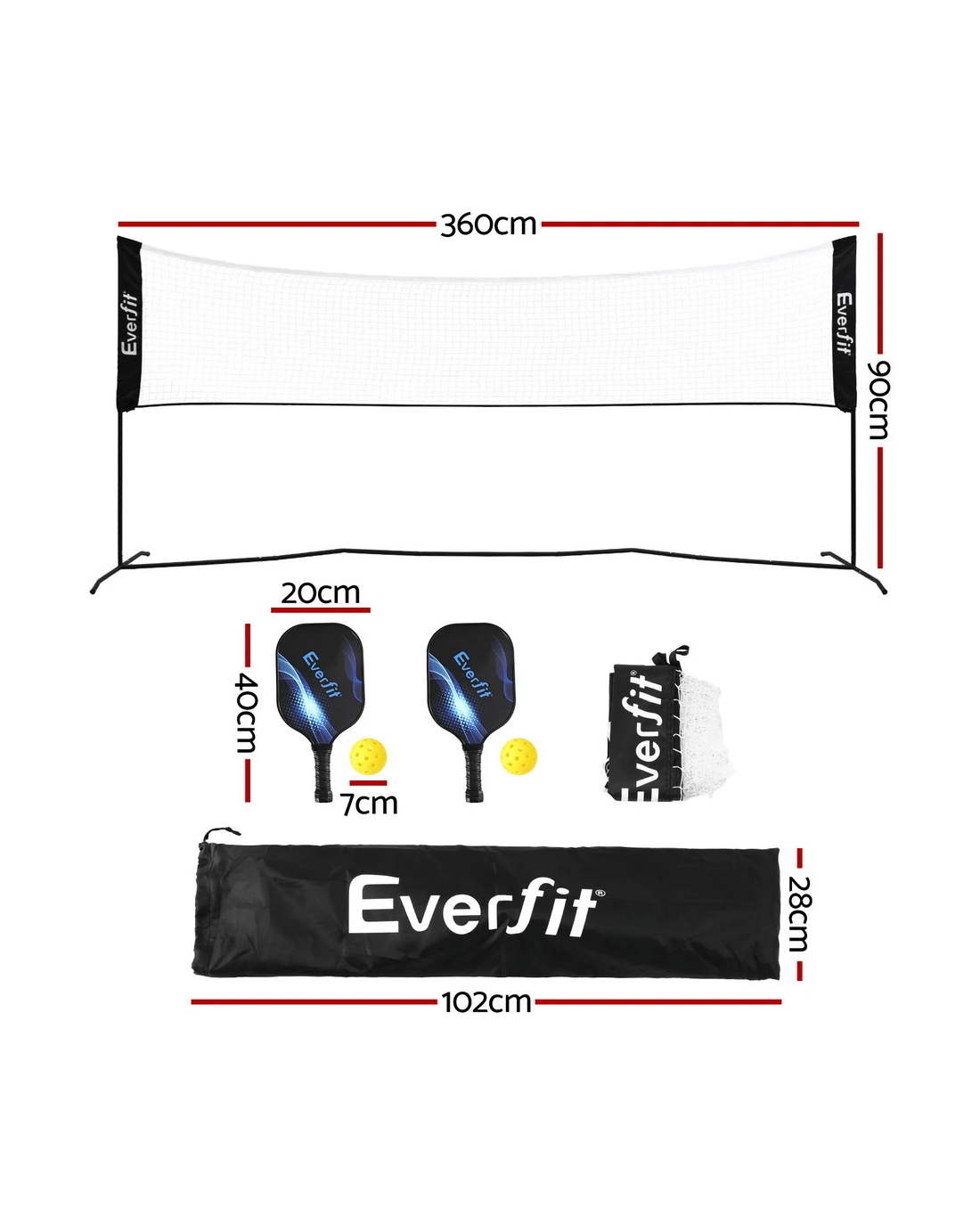 Everfit 3.6M Badminton Tennis Pickleball Net Portable Volleyball Kit Adjustable Height - Black