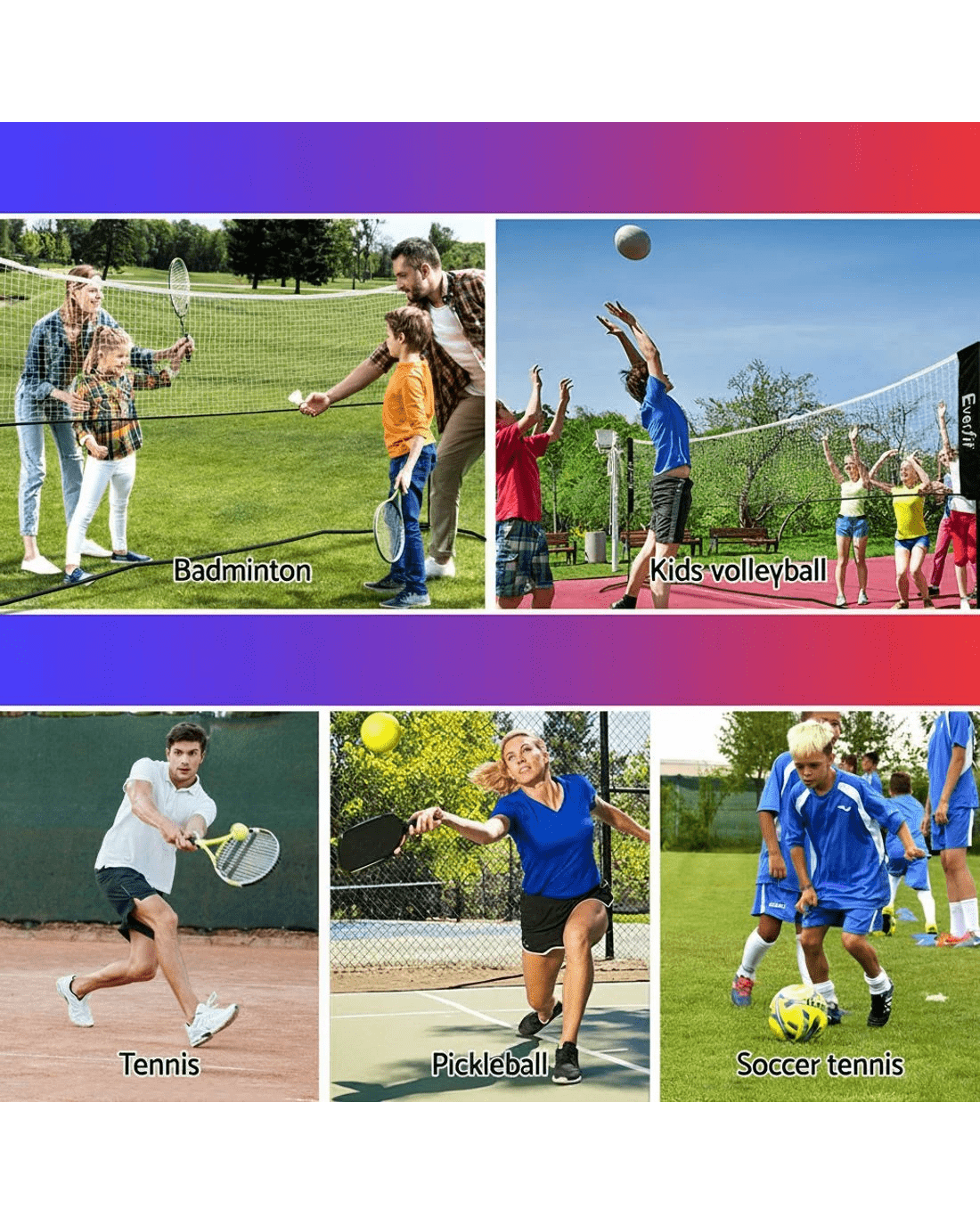 Take your game anywhere with the Everfit 3.6M Portable Sports Net, designed for badminton, tennis, volleyball, pickleball, and more. This versatile and height-adjustable net allows you to switch between different sports with ease, making it perfect for players of all ages and skill levels. Whether for casual backyard games, beach fun, or training sessions, this net is a must-have for sports enthusiasts.